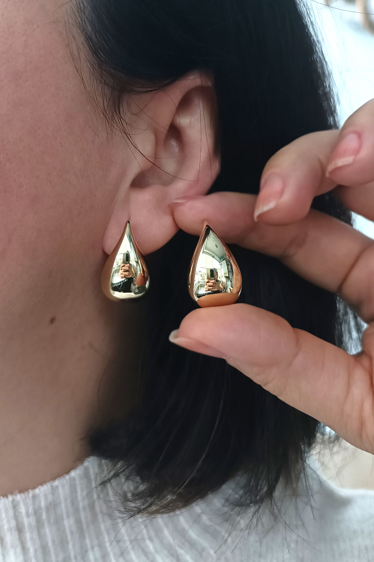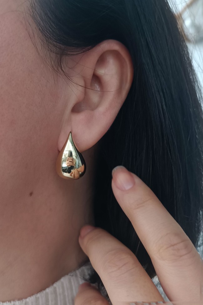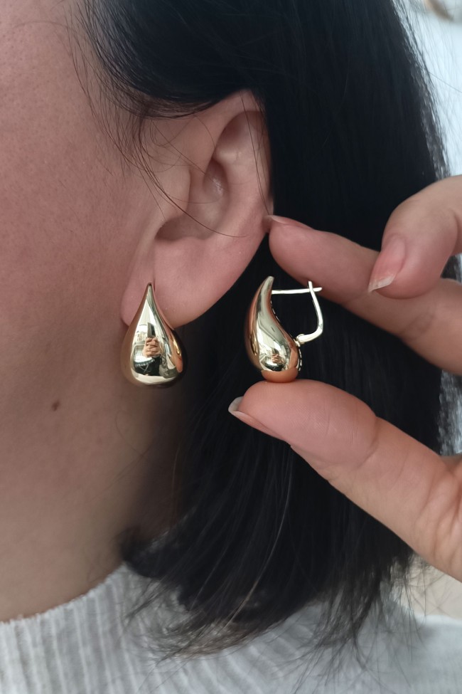 6.70 Gram Ağırlığında Klipsli Drop Damla Model Gösterişli Tasarımıyla Oldukça Spor Bir Havaya Sahip 2.5 Cm Orta Boy 14 Ayar Altın Kadın Küpe.