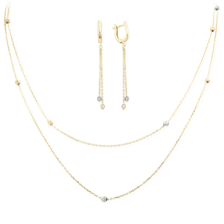 7.50 gram 14 ayar altın taşsız dorika toplu kolye ve küpeden oluşan takım. Gündelik tarzınıza ışıltı katacak sade bir aksesuar olarak severek kullanacaksınız. Hafif ve şık bir duruşa sahip bu şahane takımı ister ikili set olarak ister tek tek kombinleyerek kullanın!