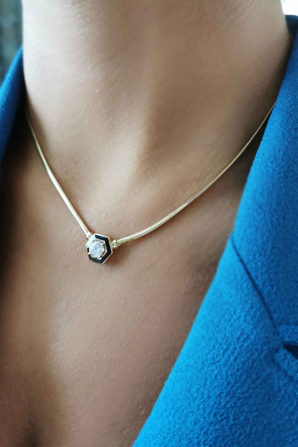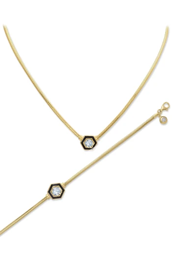 Trend Tasarım Modeliyle 46 Cm Boyunda 7.35 Gr. Ağırlığında 14 Ayar Günlük Kullanıma Uygun Siyah Mine Detaylı Altın Kolye.