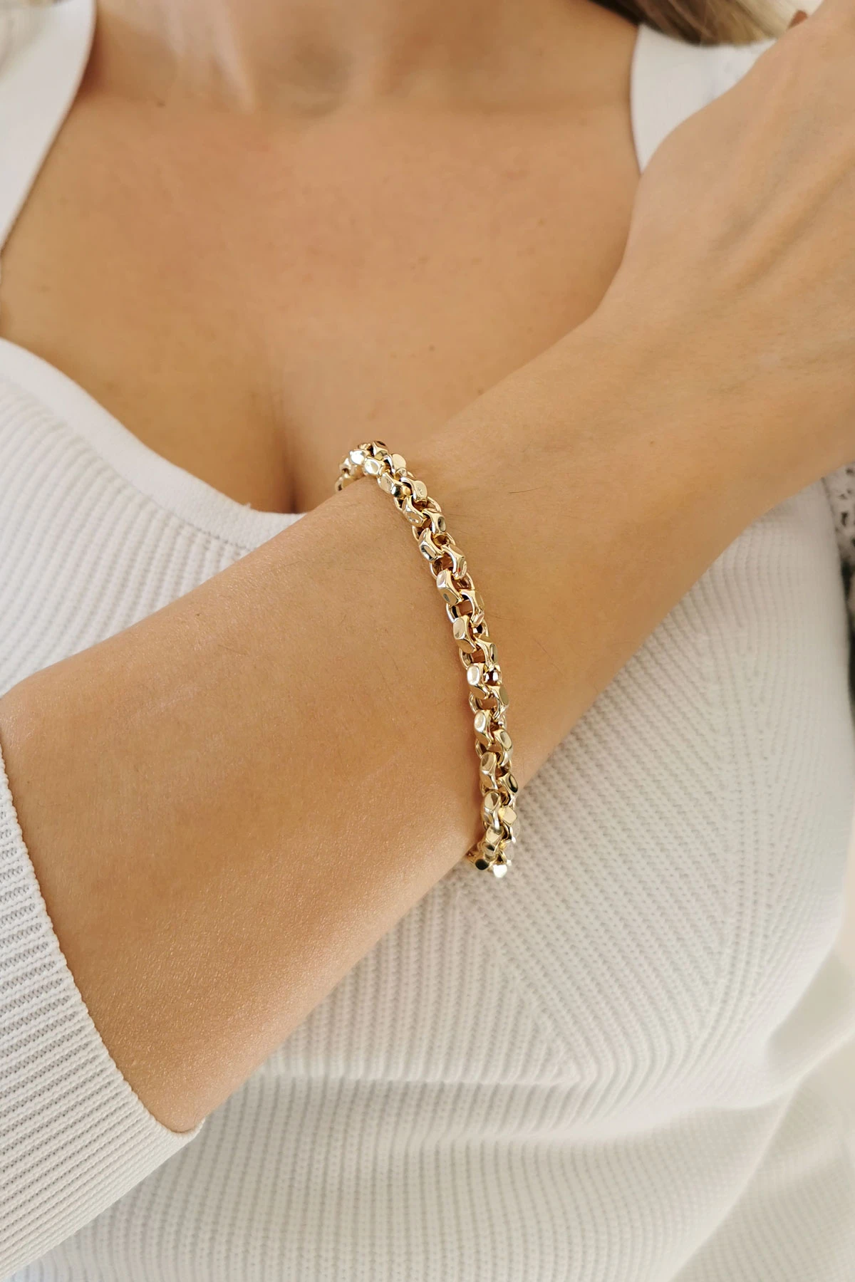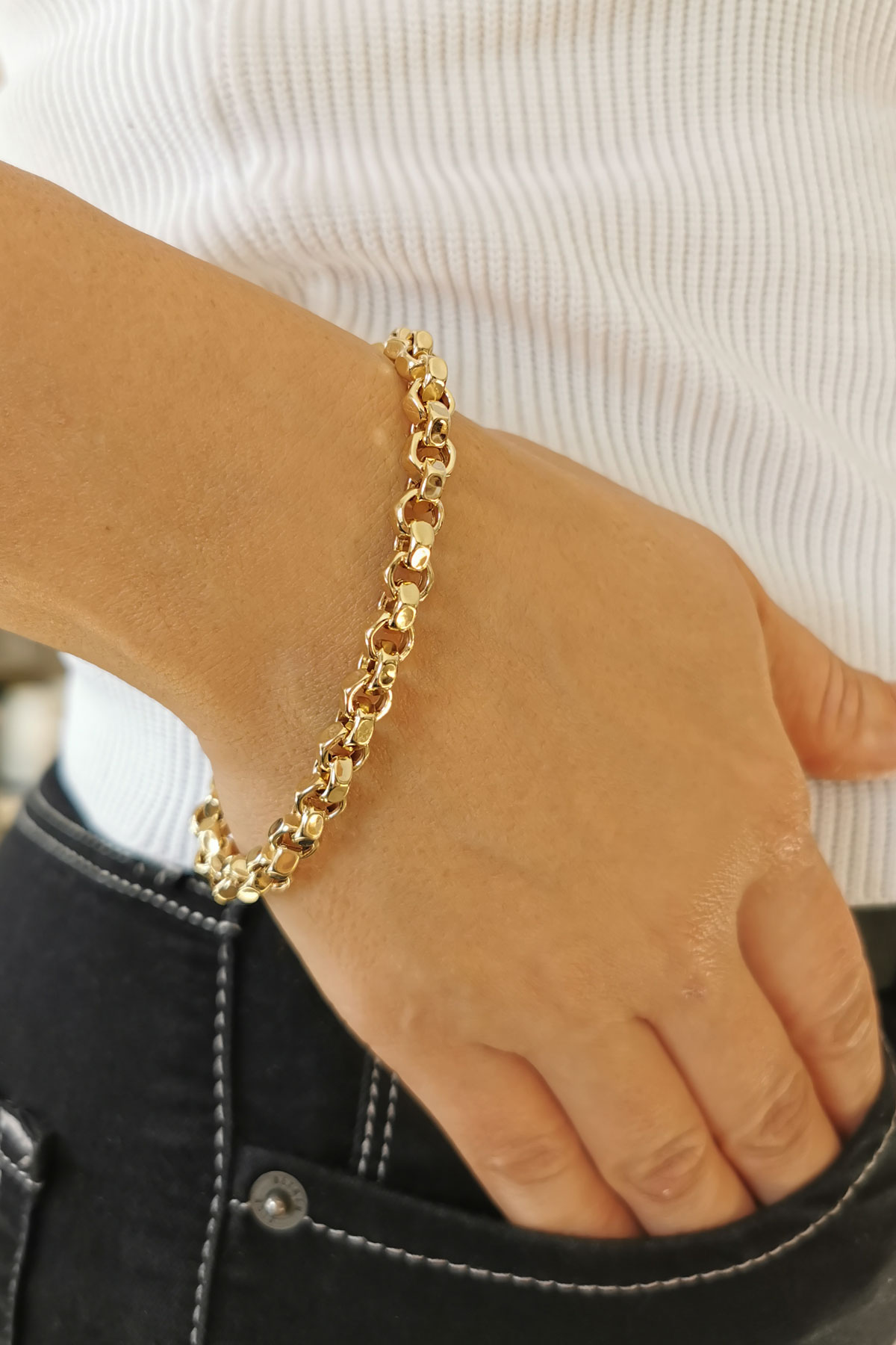 Modern Tarzı İle Unisex Kullanıma Uygun 20.5 Cm Boyunda 5 Mm Eninde Tarz Model 11. 00 Gr. Ağırlığında 14 Ayar Altın Köşeli Doc Bileklik.