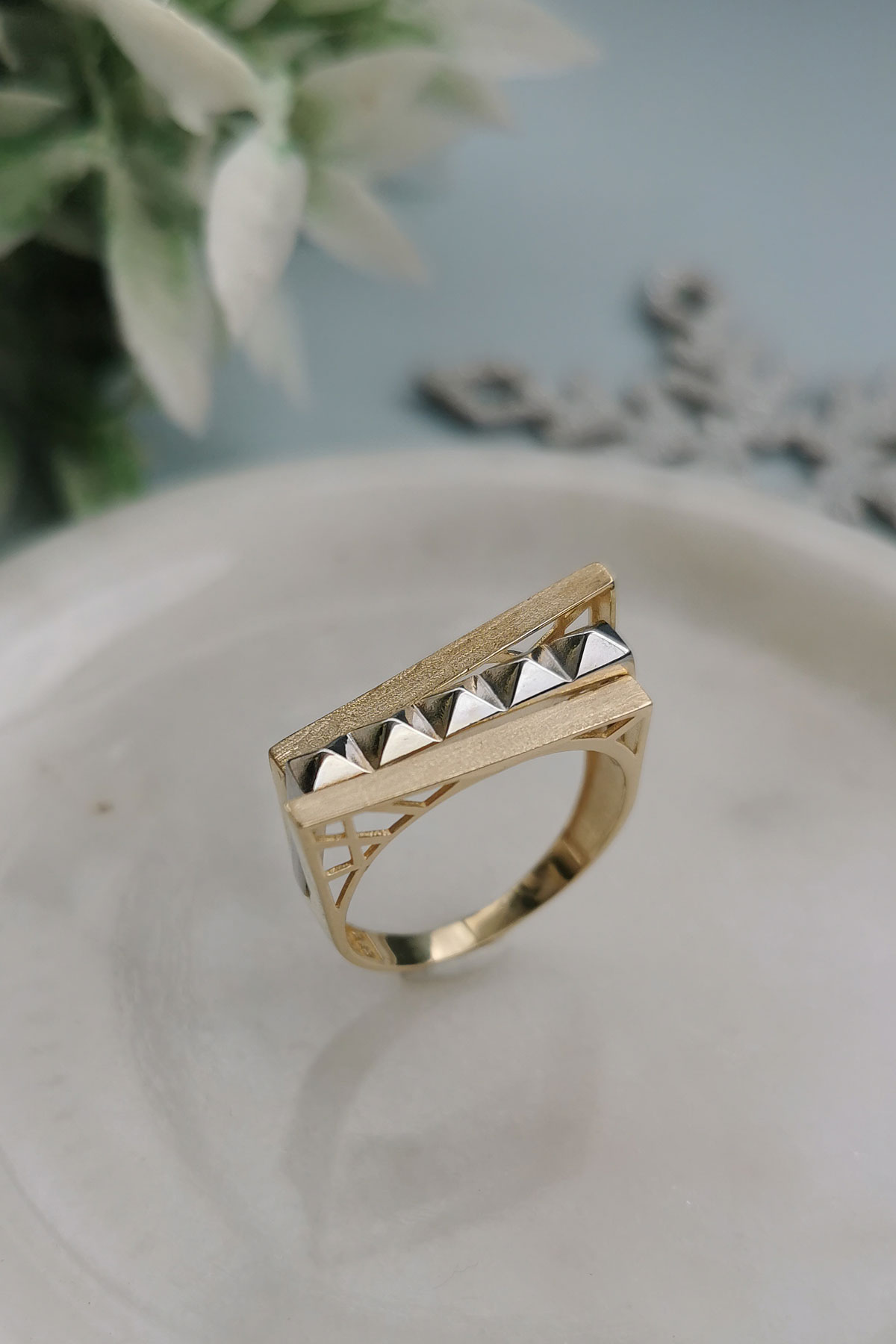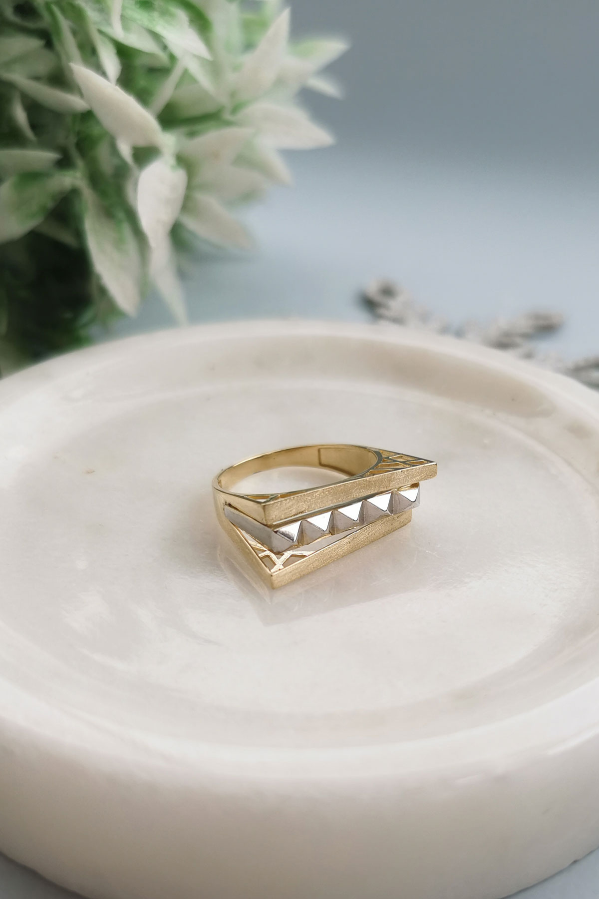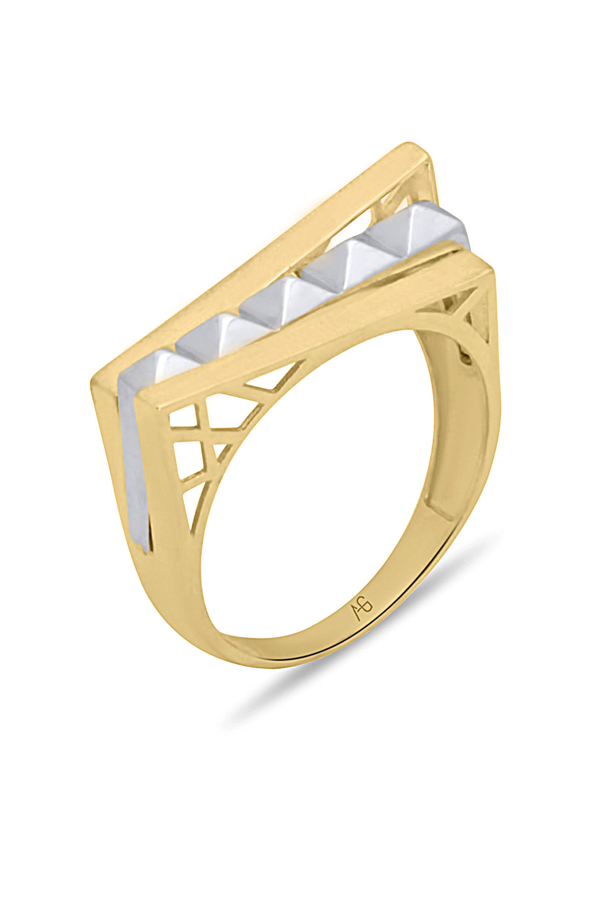 3.00 Gram Ağırlığında 14 Ayar Şık Ve Modern Tasarımıyla Farklı Bir Havaya Sahip Piramit Orta Şeritli Köşeli Model Tasarım Taşsız Altın Yüzük.