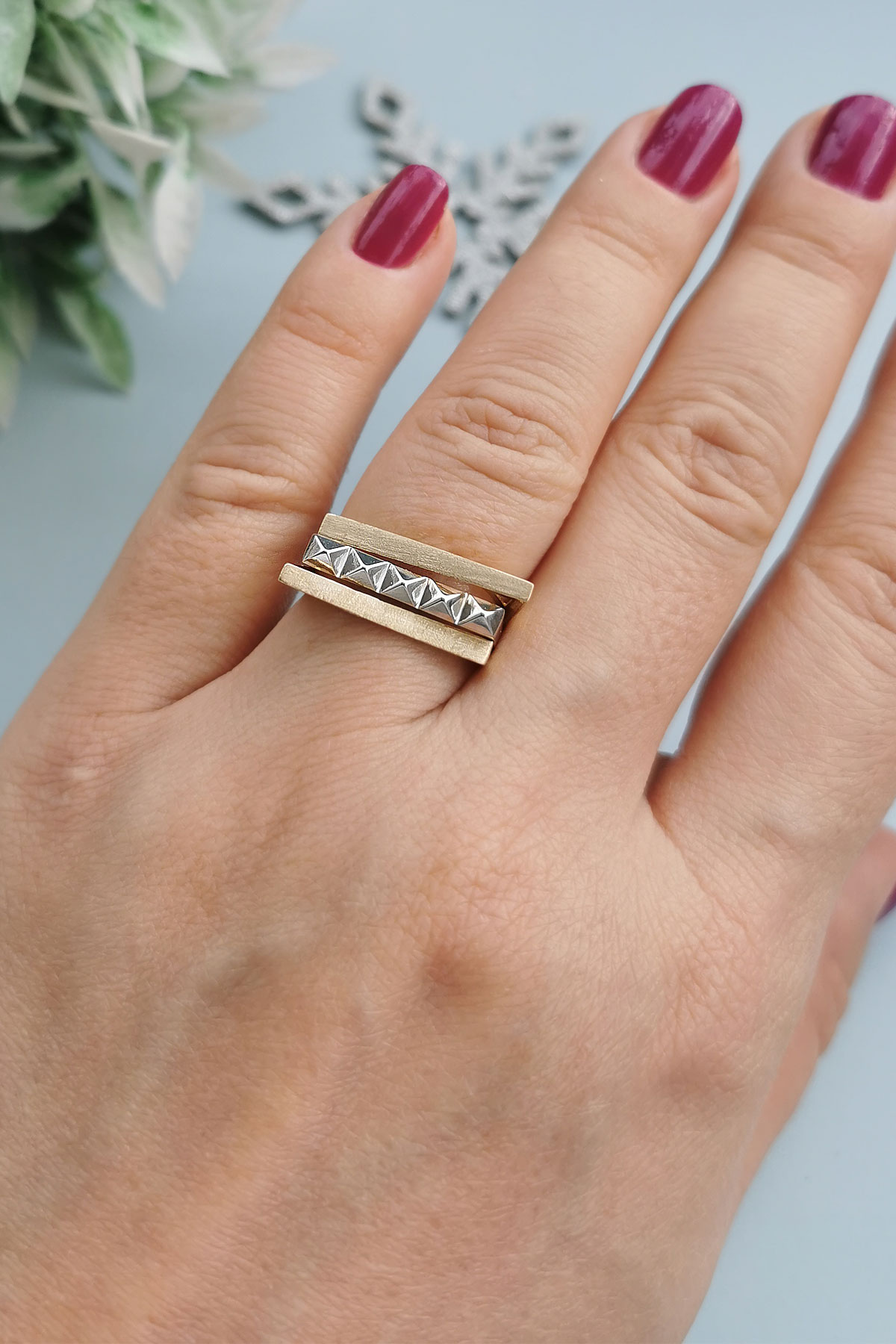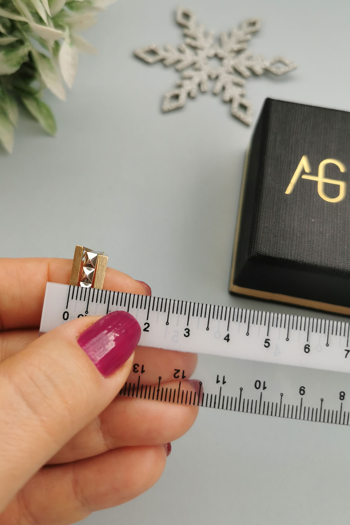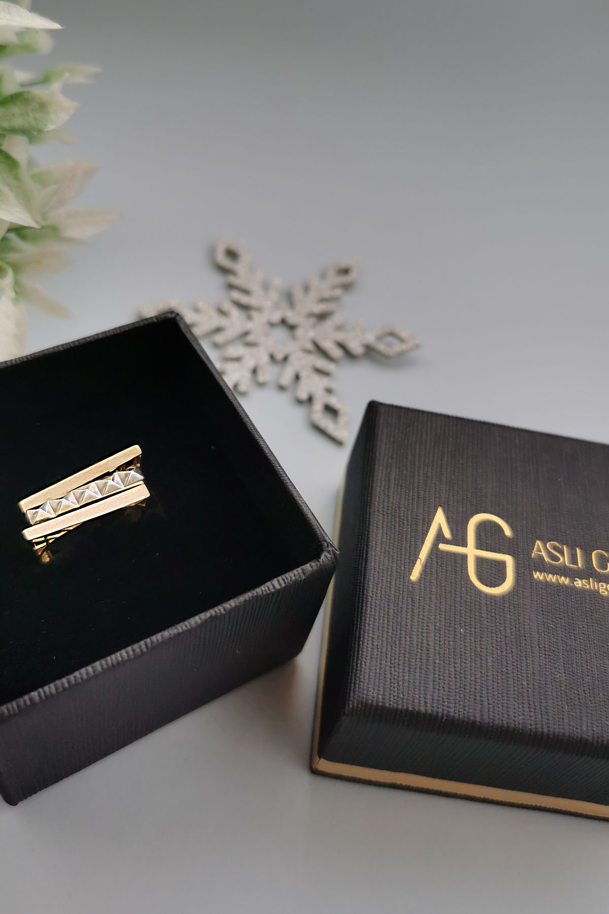 3.00 Gram Ağırlığında 14 Ayar Şık Ve Modern Tasarımıyla Farklı Bir Havaya Sahip Piramit Orta Şeritli Köşeli Model Tasarım Taşsız Altın Yüzük.