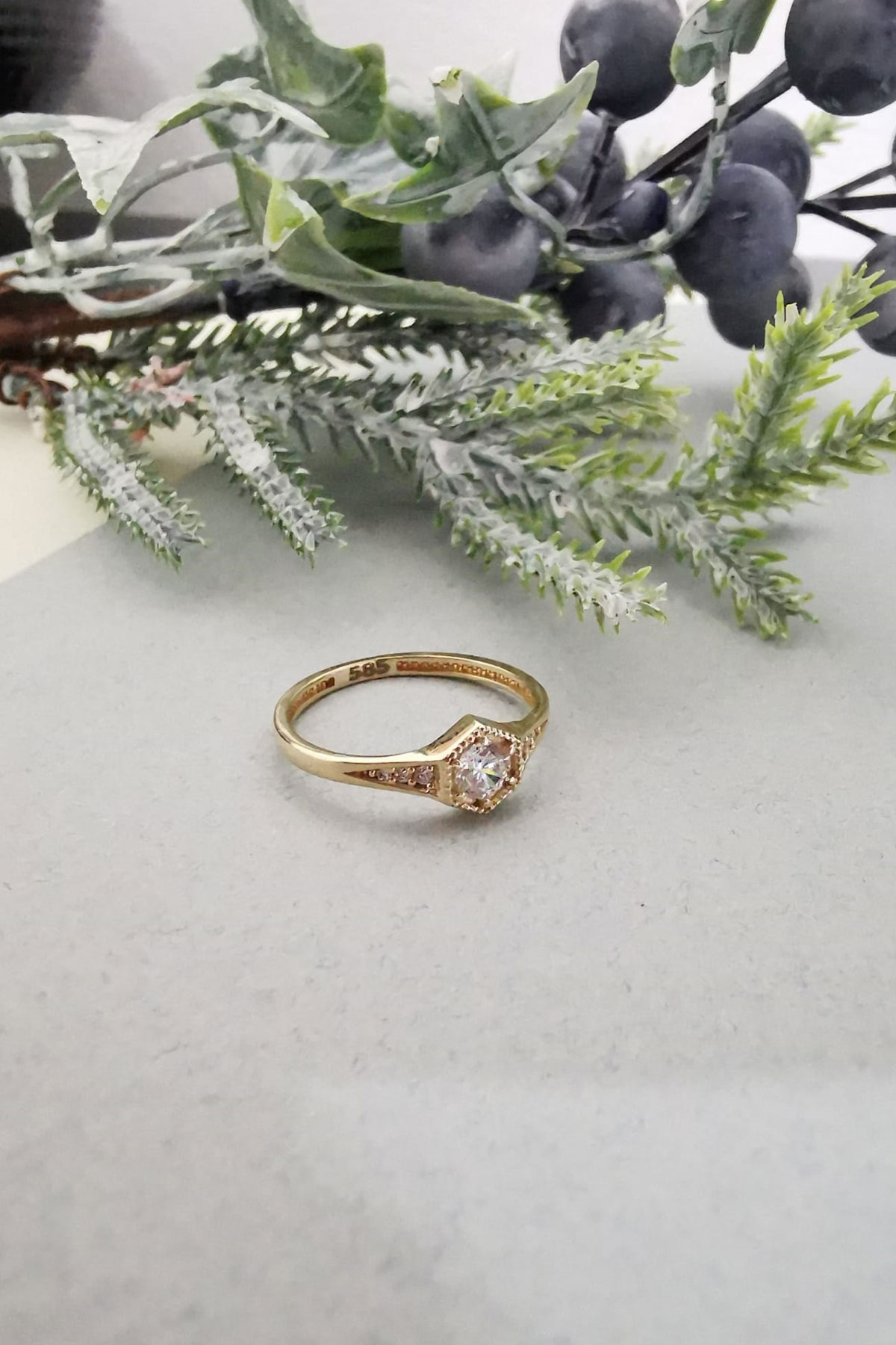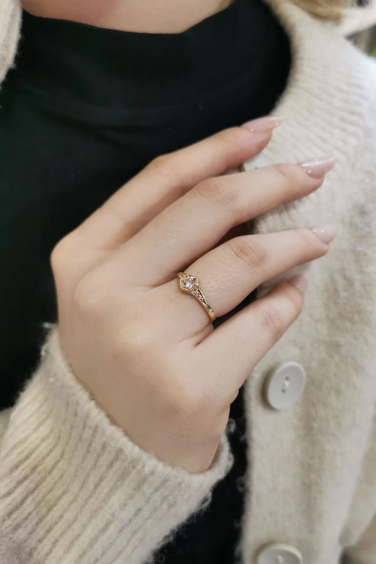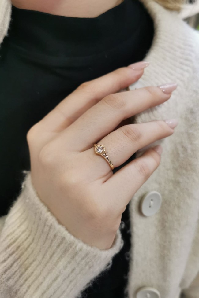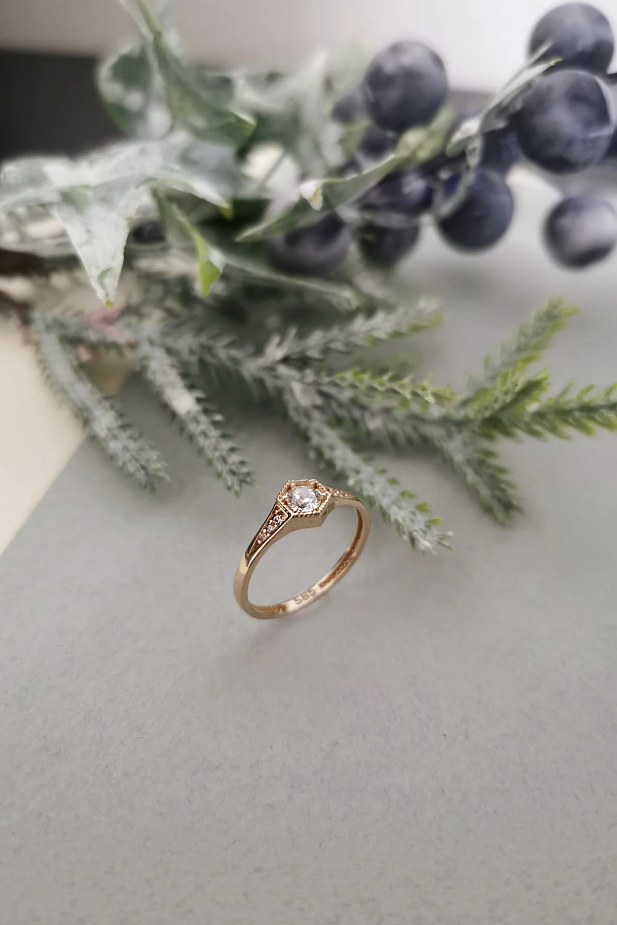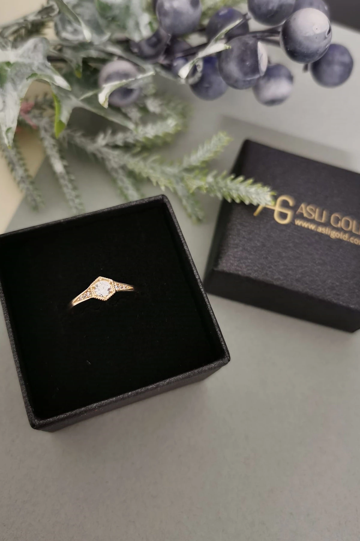 1.40 Gram Ağırlığında Köşeli Tektaş Tasarım Günlük Kullanıma Uygun 14 Ayar Altın Minimal Yüzük.
