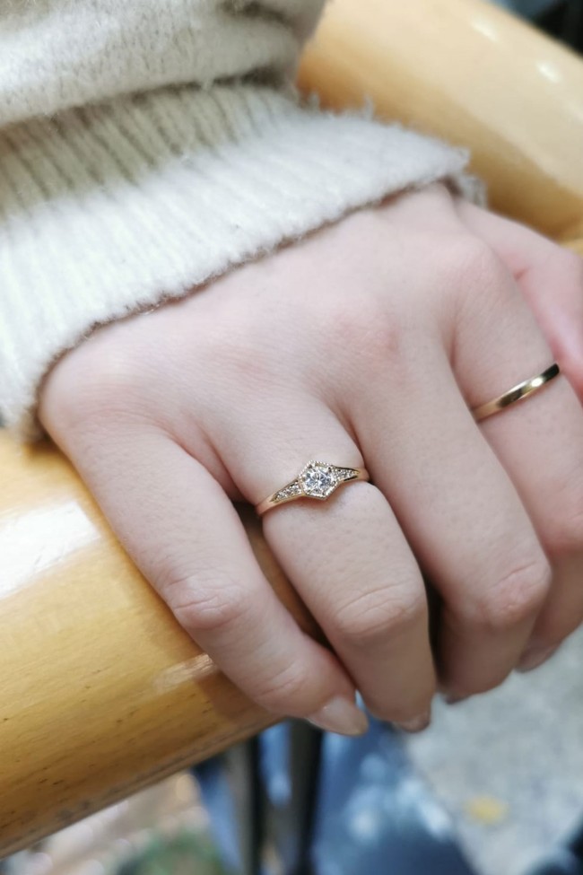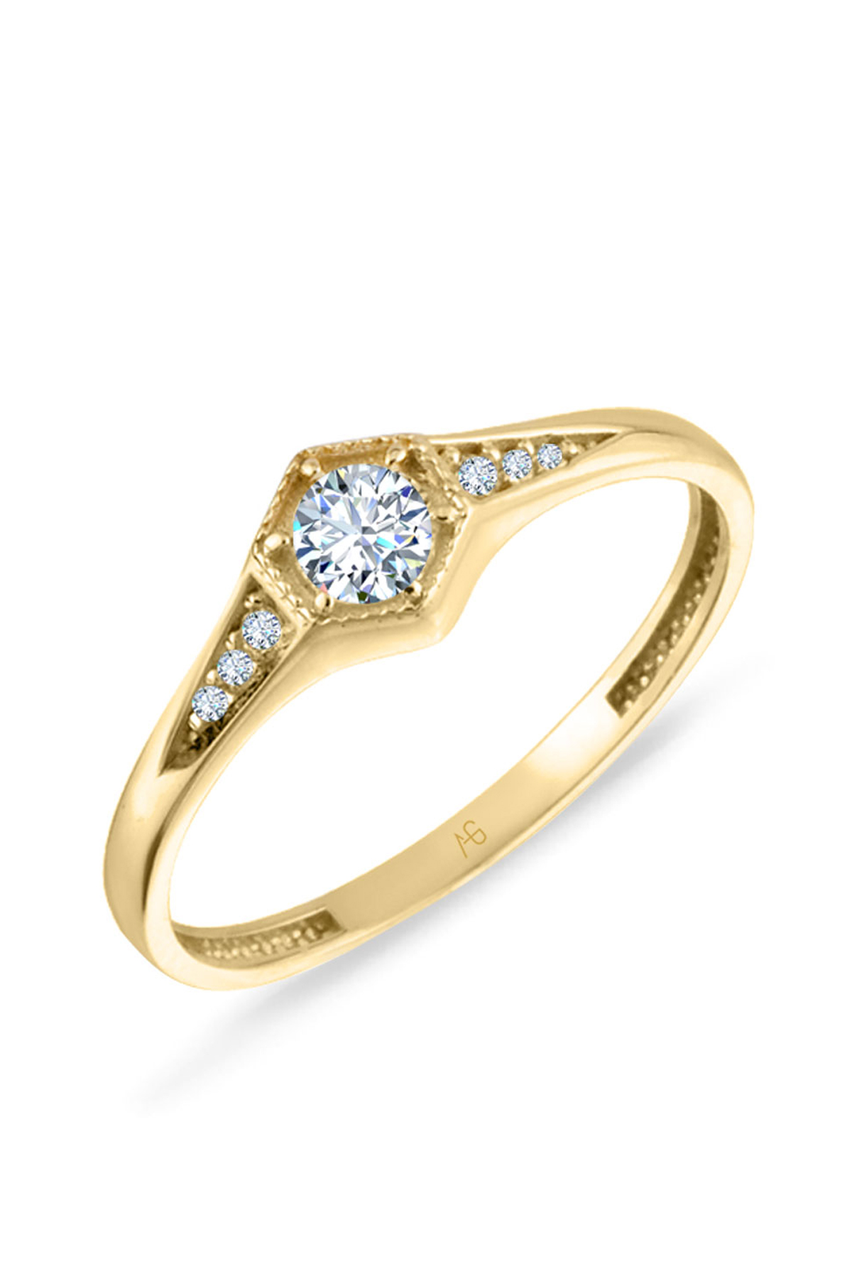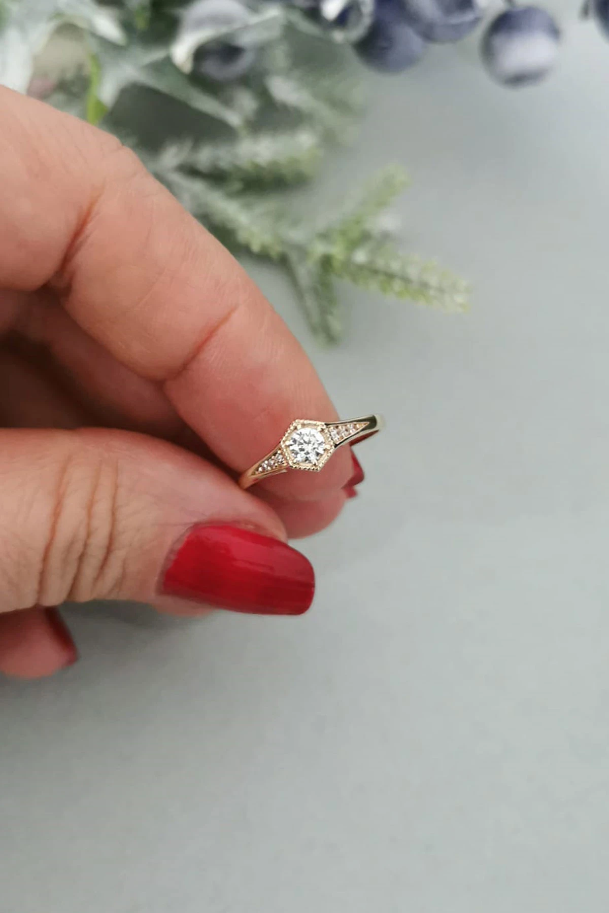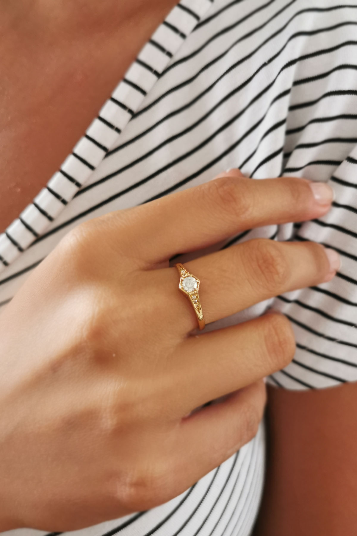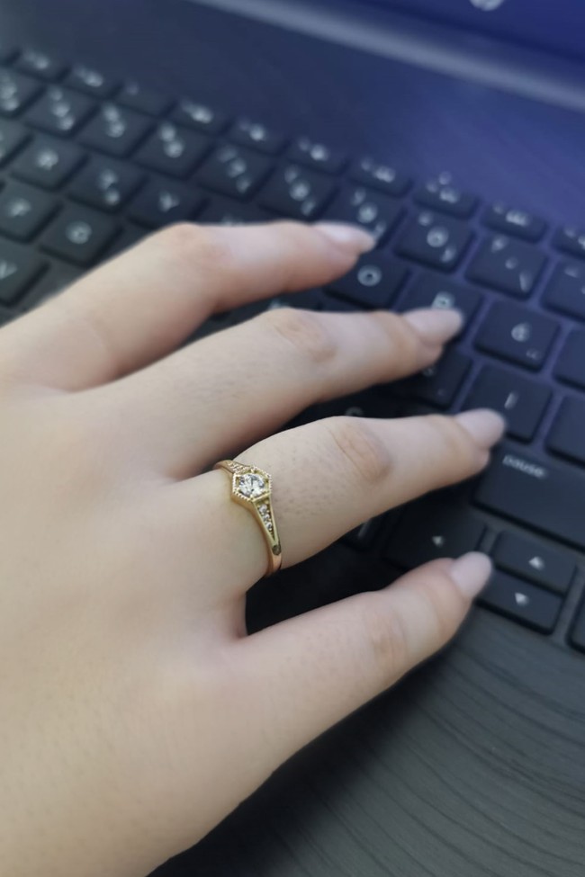 1.40 Gram Ağırlığında Köşeli Tektaş Tasarım Günlük Kullanıma Uygun 14 Ayar Altın Minimal Yüzük.