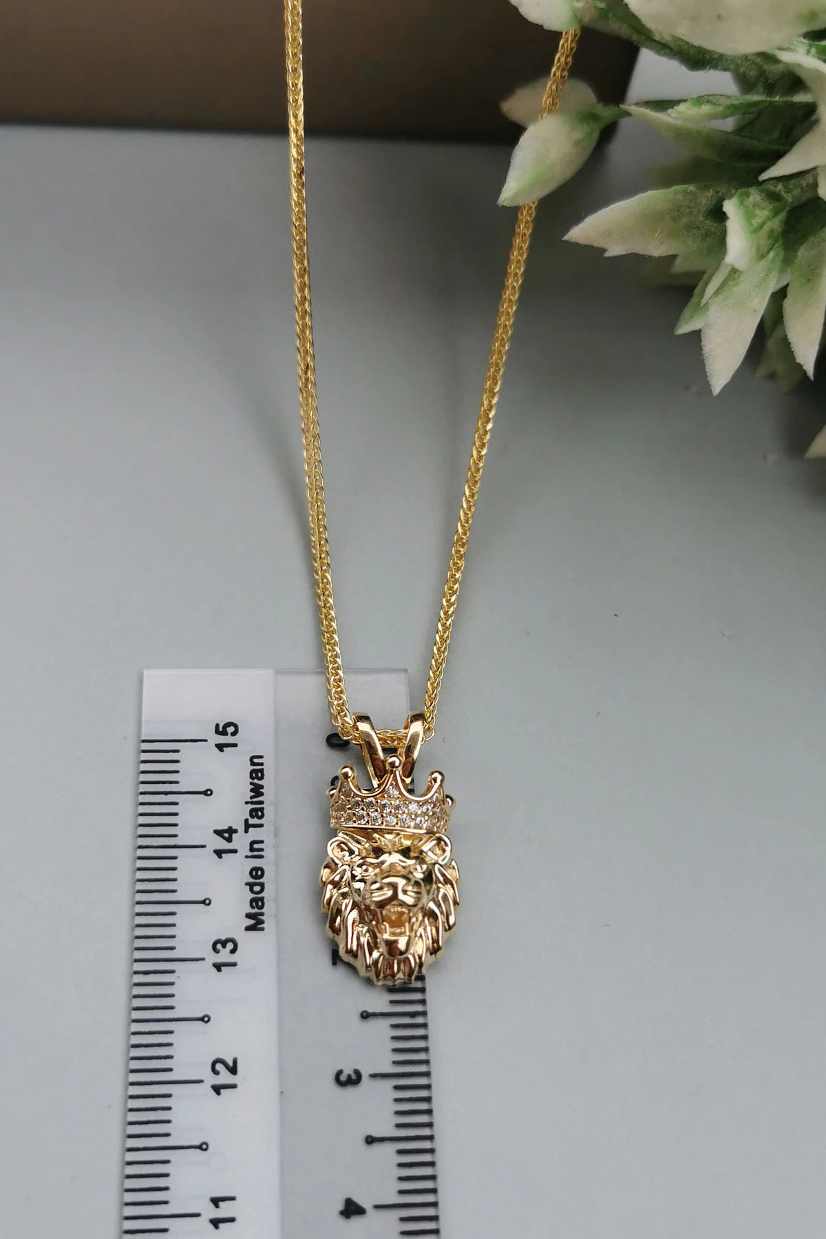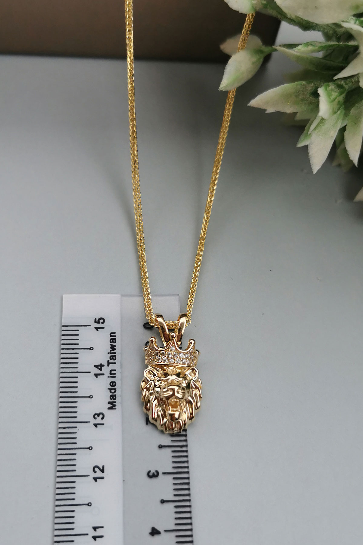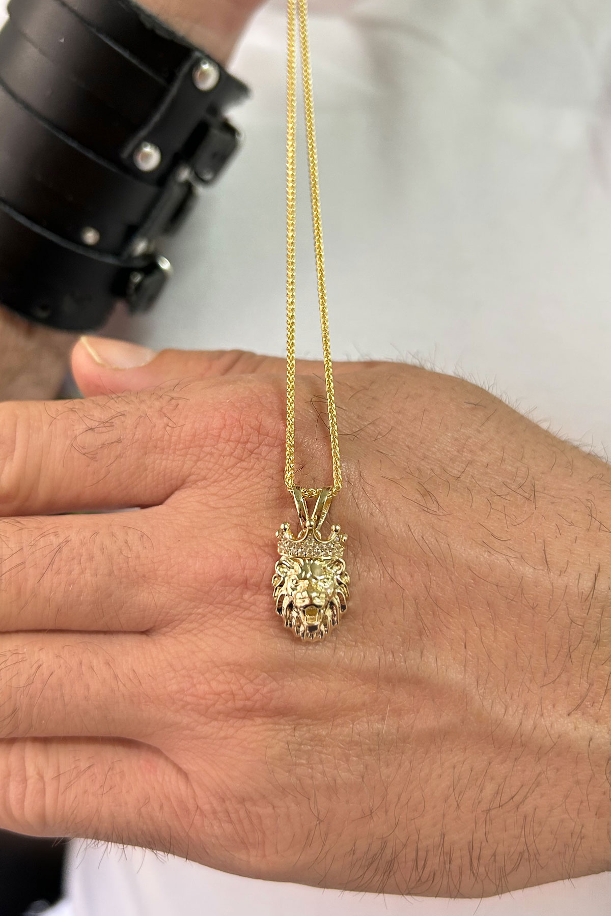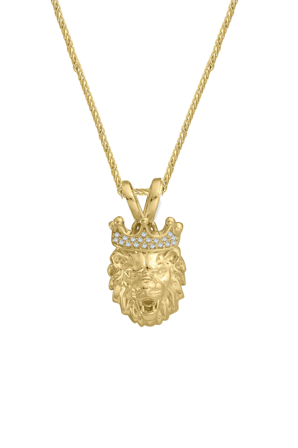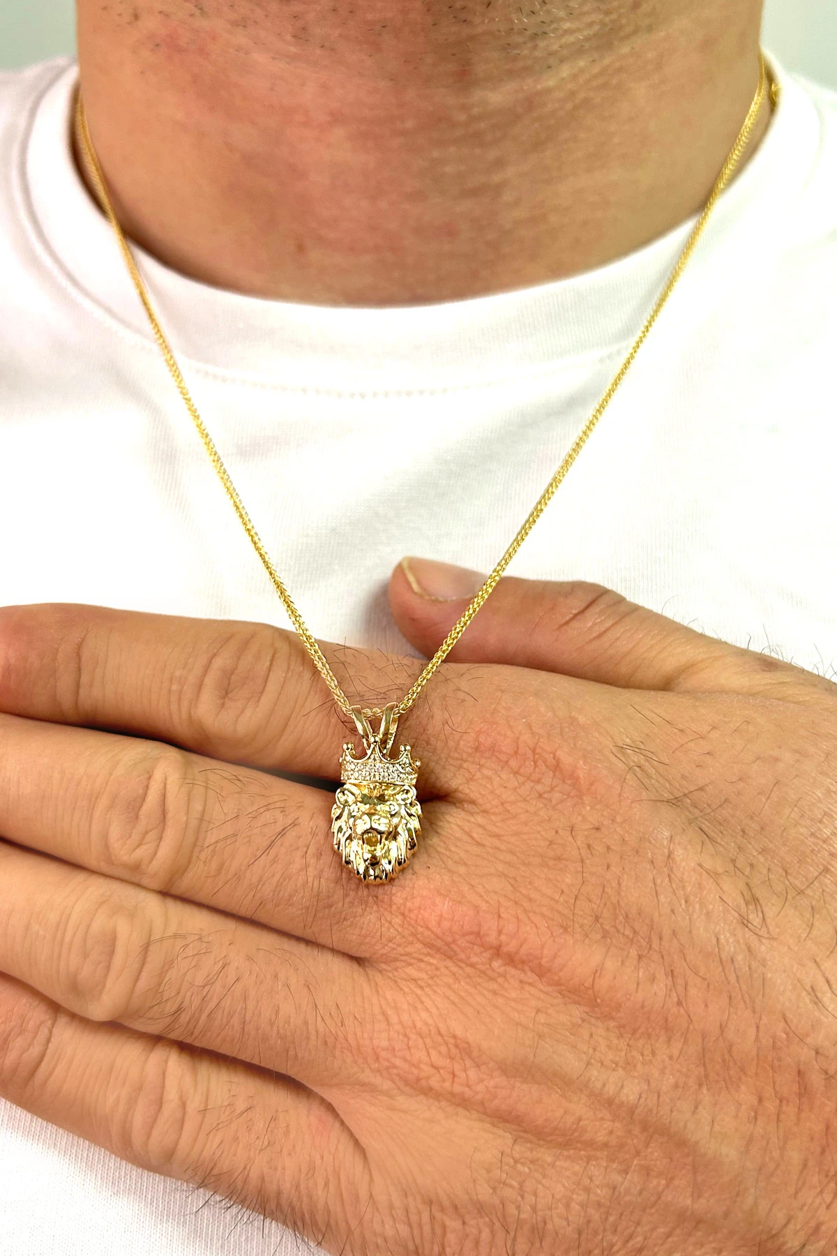 Modern Şehirli Tarz 60 Cm Boyunda Spiga Zinciri İle Oldukça Şık Bir Modele Sahip 5.30 Gr. Ağırlığında 14 Ayar Altın Beyaz Zirkon Taşlı Aslan Erkek Kolye.