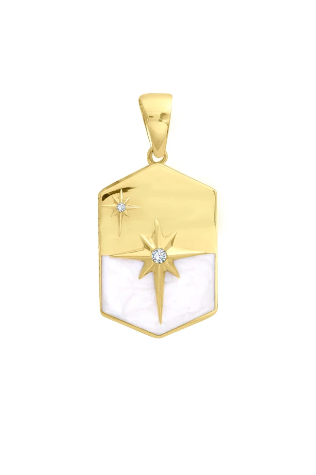 14 Ayar altın 5.65 gram ağırlığında şık ve gündelik kullanıma uygun 3.5 cm boyunda sedef beyaz mineli unisex künye model yılıdz kolye ucu.