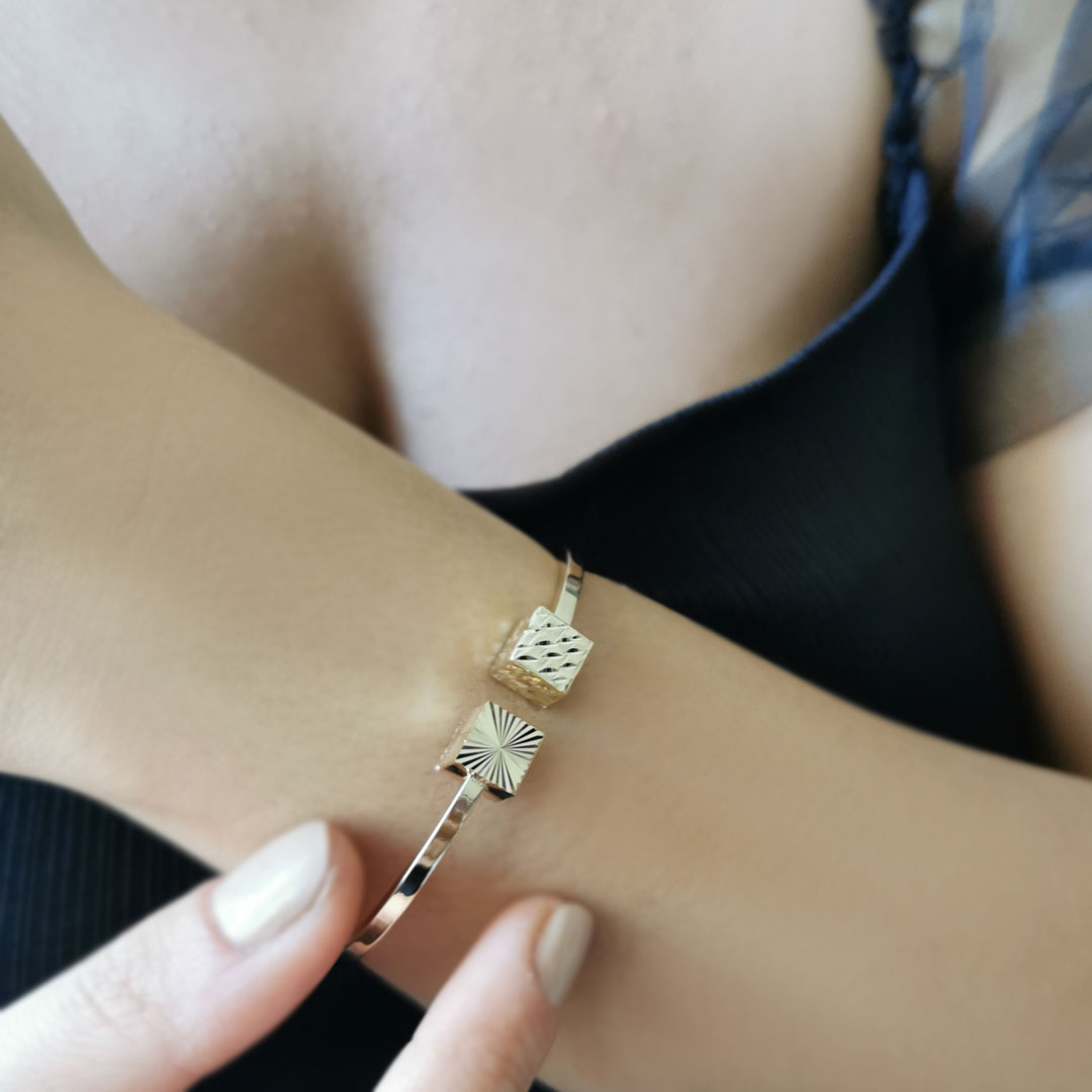 5.65 Gram Ağırlığında 14 Ayar Kalemli Küp Başlı Altın İsabel Kelepçe / Bilezik.