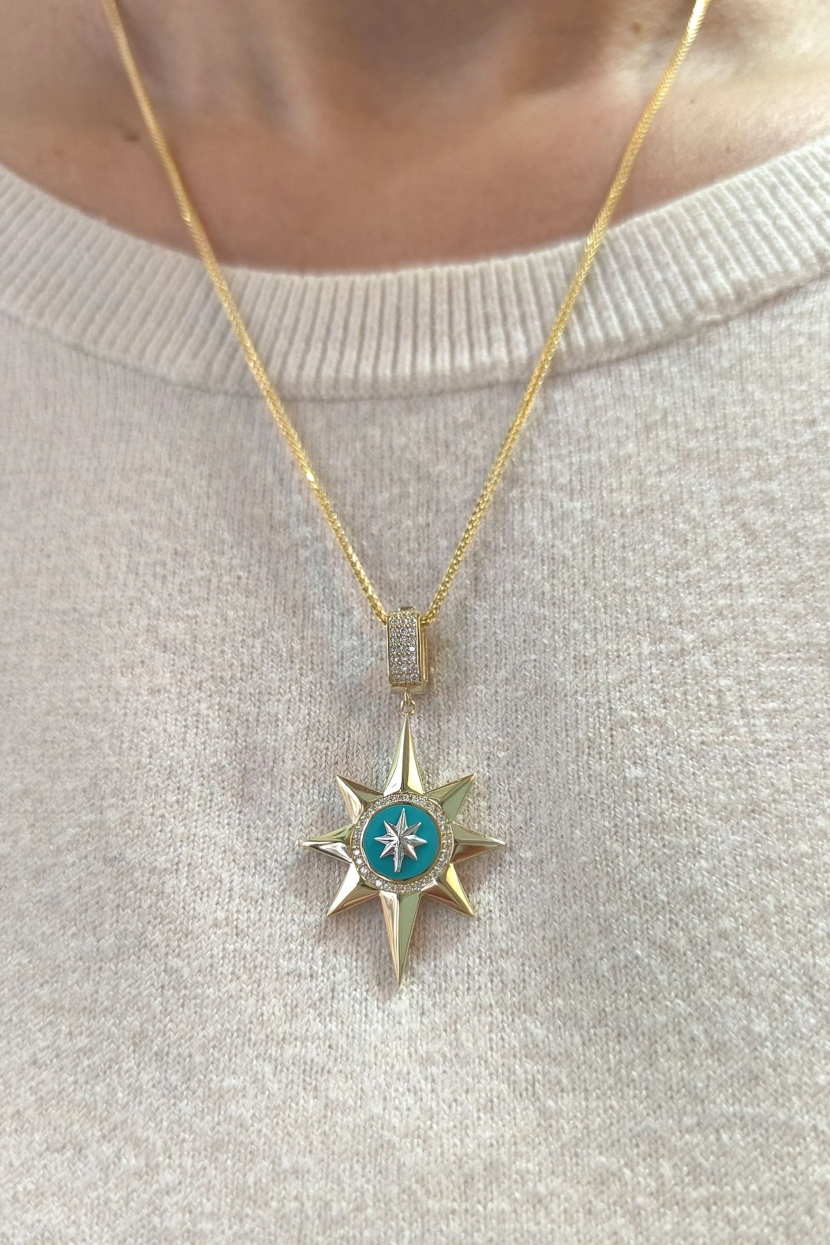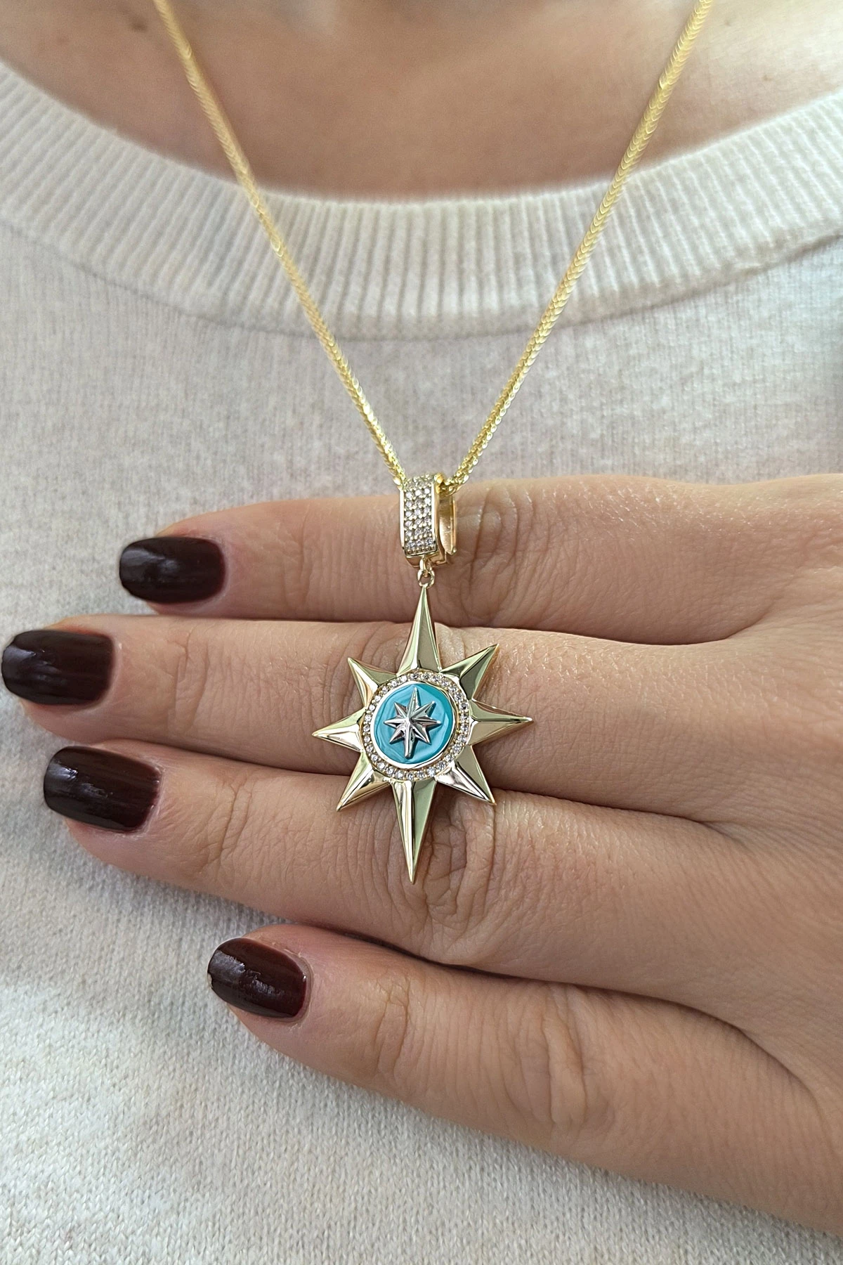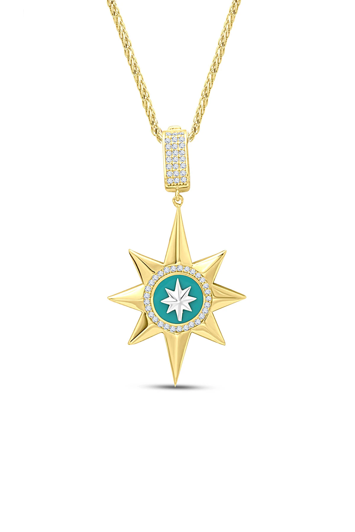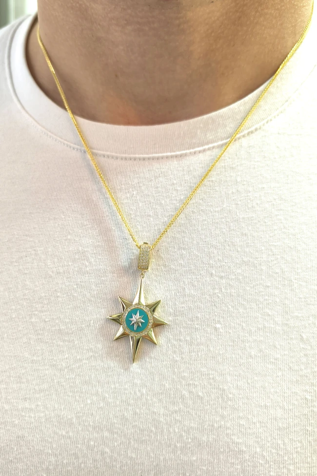 Spor Ve Modern Tarz Oldukça Şık Bir Modele Sahip 6.70 Gr. Ağırlığında 14 Ayar Altın Siyah Mineli Kuzey Yıldızı Model Unisex Kolye.