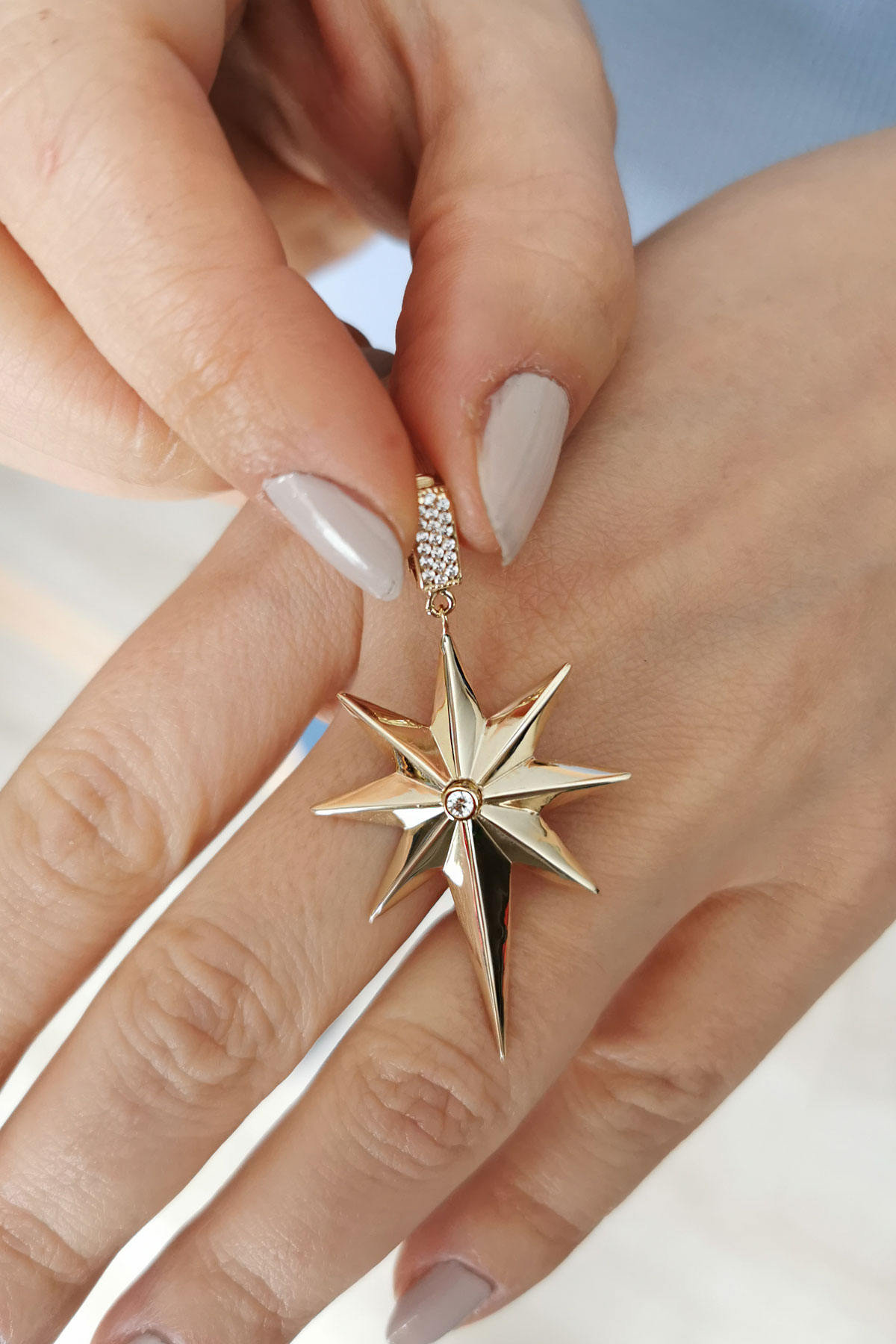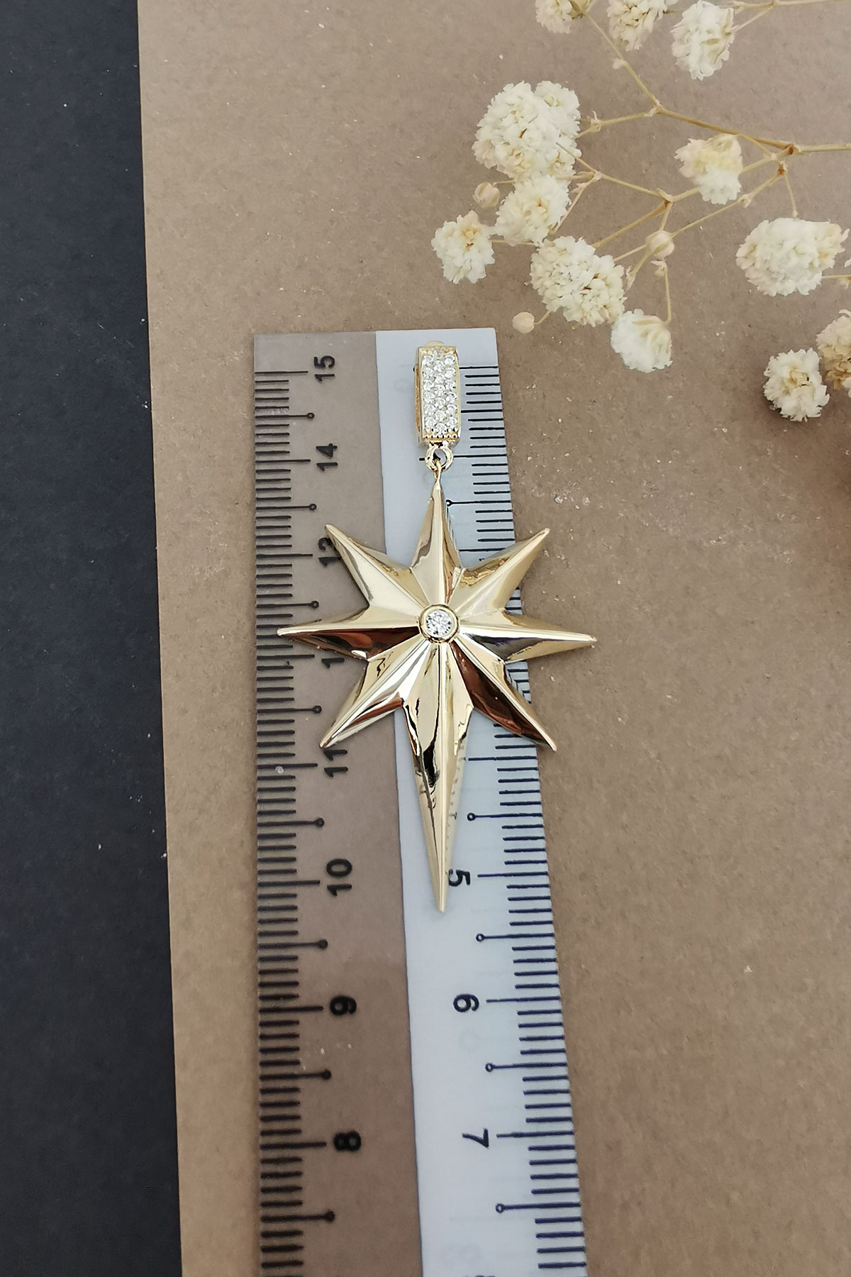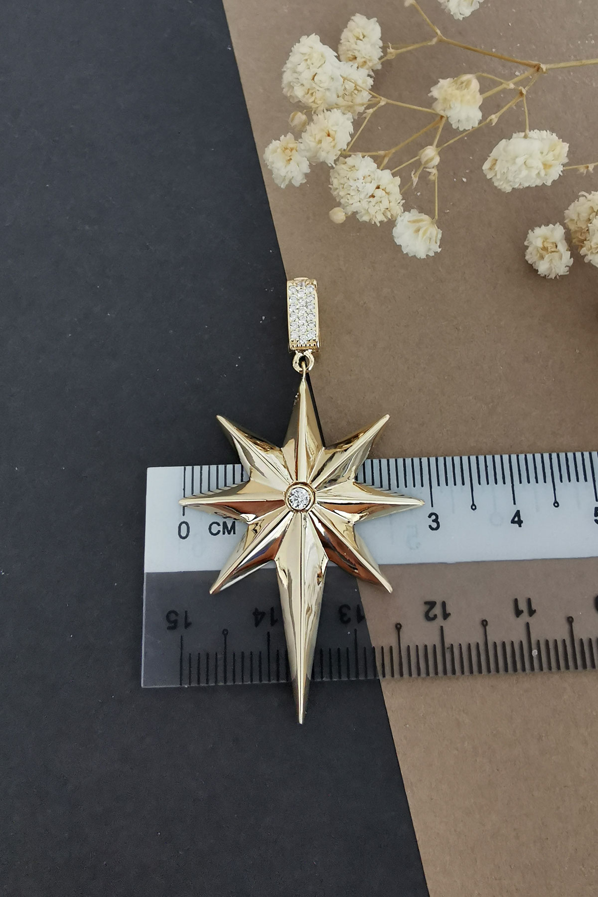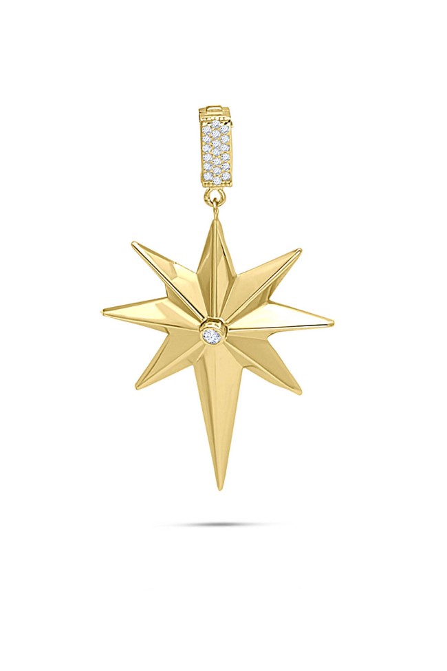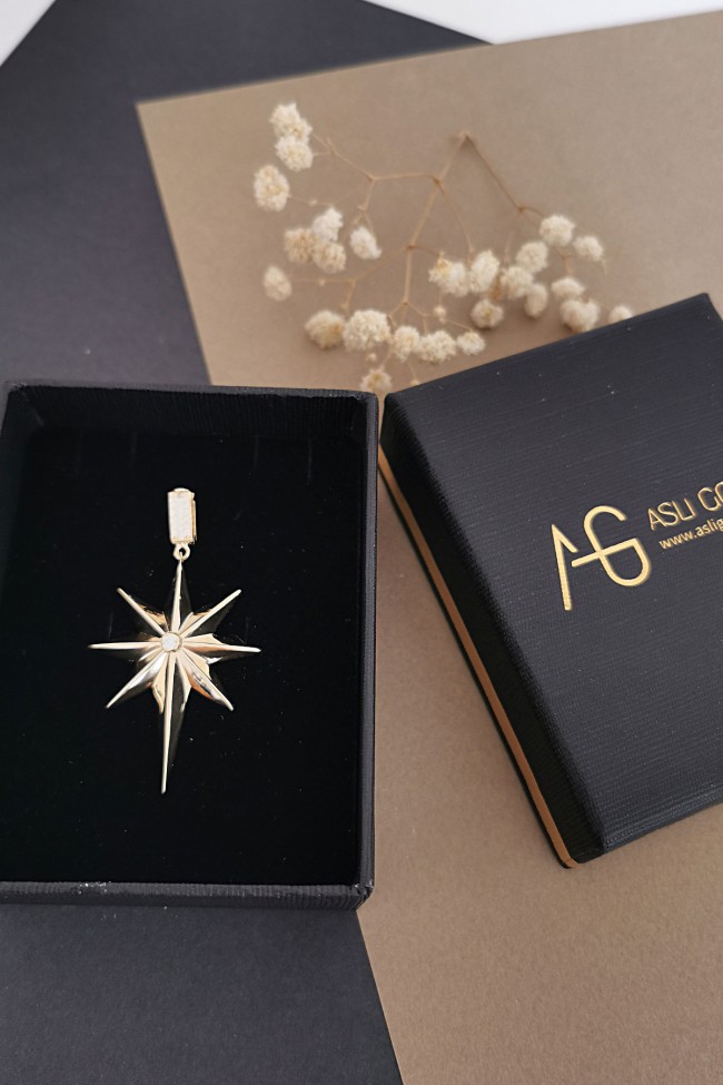 3.70 gr. 5 cm boyutunda zirkon taşlı model 14 ayar altın kutup yıldızı kolye ucu. Farklı zincirlerinizle bir arada kombine olarak kullanabileceğiniz harika ve gösterişli bir model.
