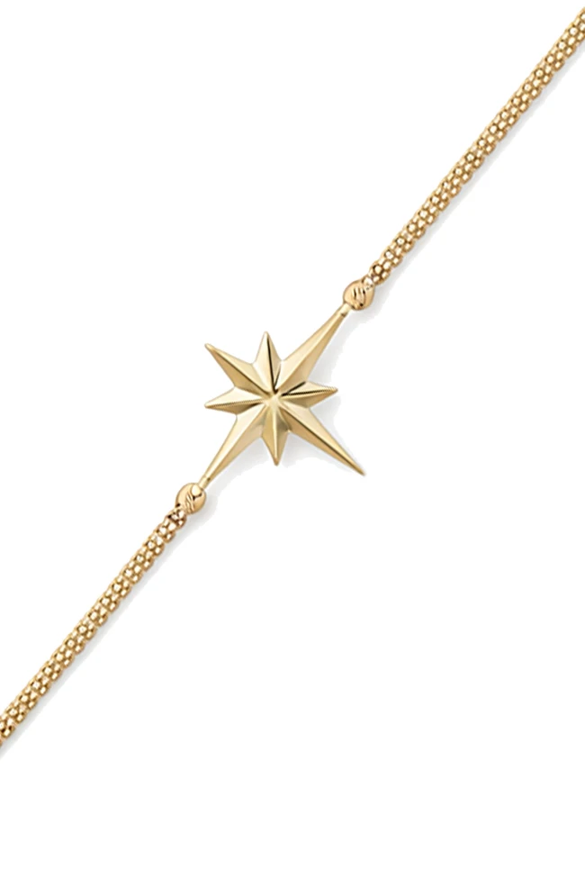 14 Ayar 2.50 gram ağırlığında 18 cm boyunda tüm sezon gömlek ve basic tişörlerinizle severek kullanacağınız, spor giyim tarzınıza da muhteşem uyum sağlayacak ışıl ışıl atın popcorn zincirli kuzey yıldızı altın bileklik.