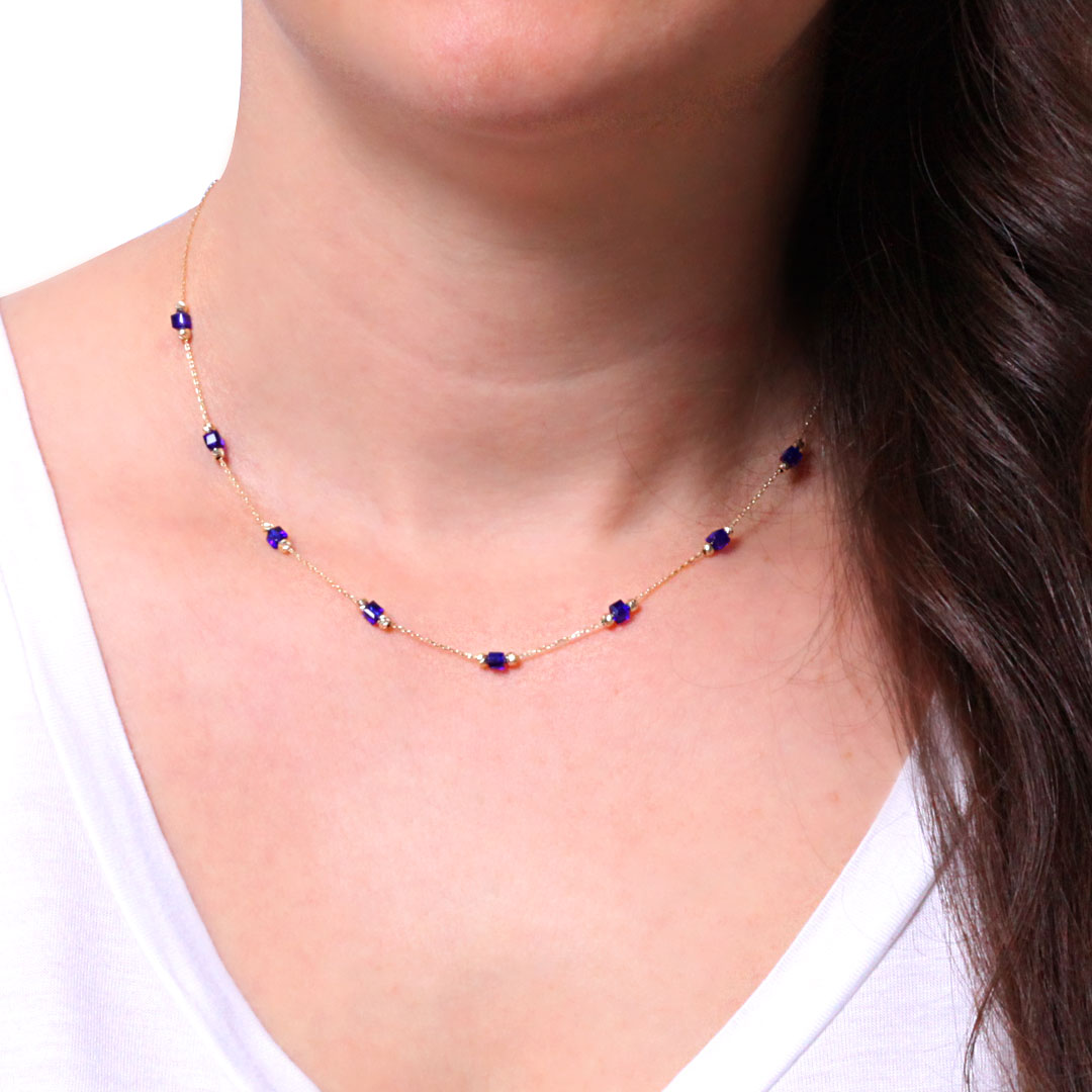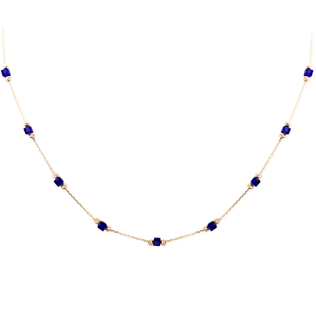 14 Ayar altın zarif tasarımıyla günlük kullanıma uygun lacivert küp taşlı spor kolye.