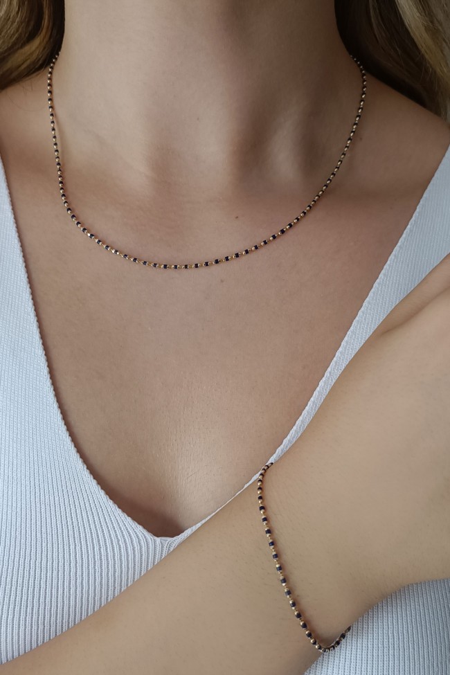 5.90 Gram Ağırlığında 14 Ayar Mineli Model El İşçiliği İle Özel Olarak Üretilen Altın İtalyan Tasarım Minimal Bileklik Kolye İkili Takım.