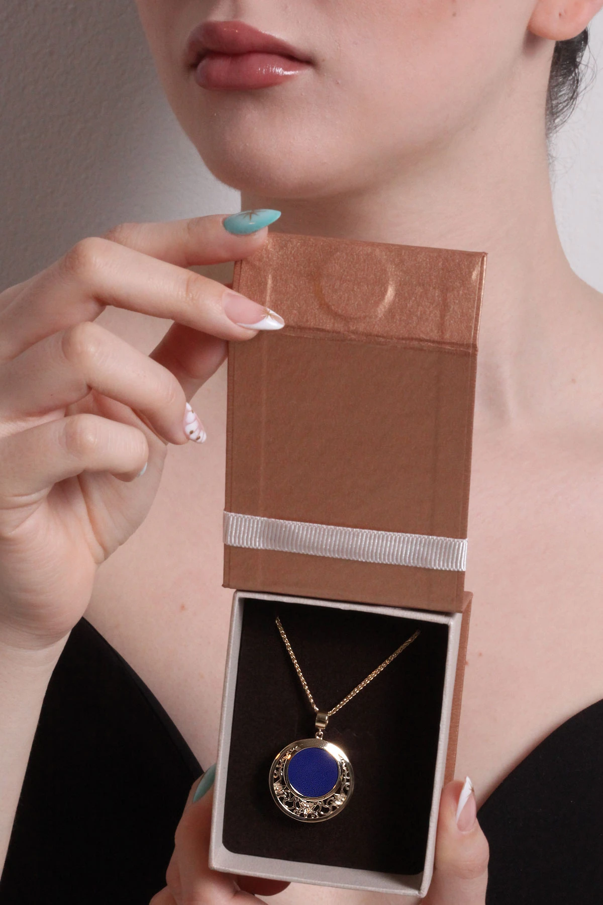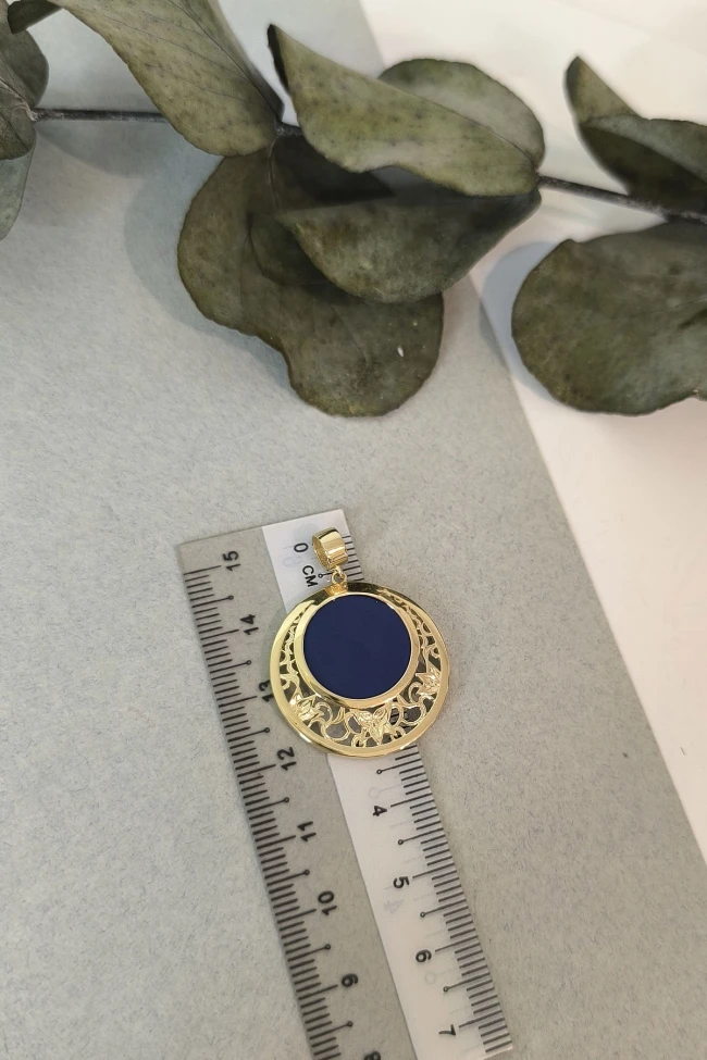 Antik Ve Modern Tarzı Beraberinde Taşıyan Oldukça Şık Bir Modele Sahip 6.50 Gr. Ağırlığında 14 Ayar Altın Lacivert Mineli Kolye.