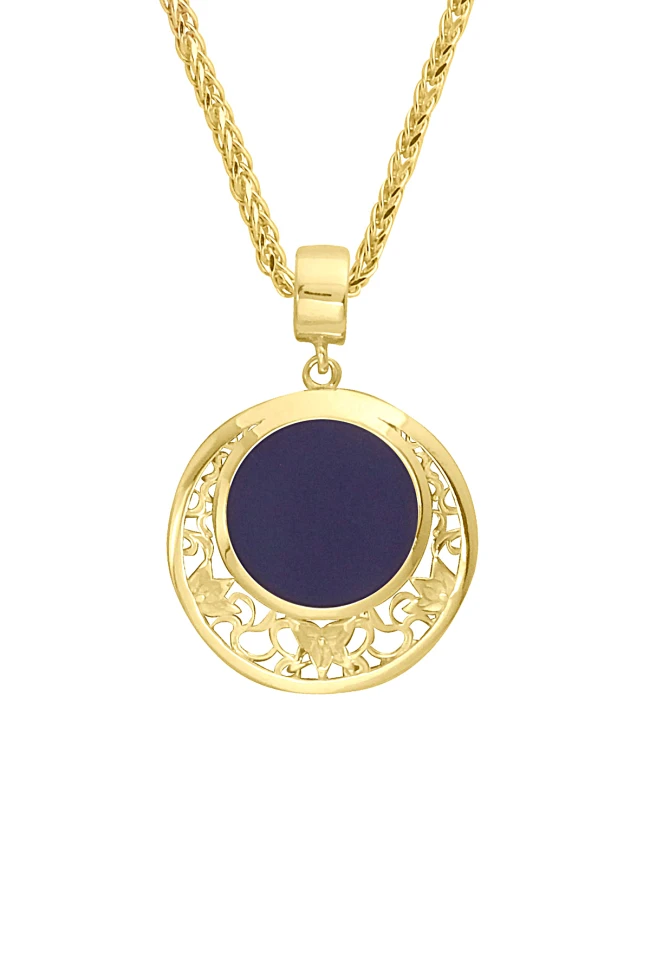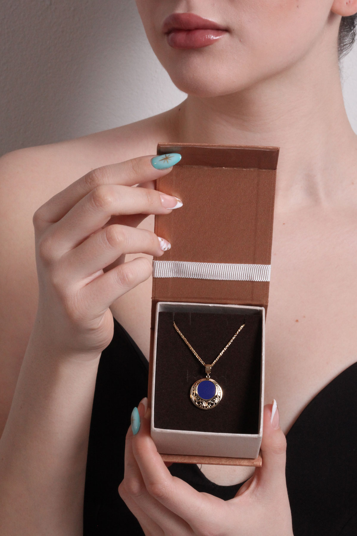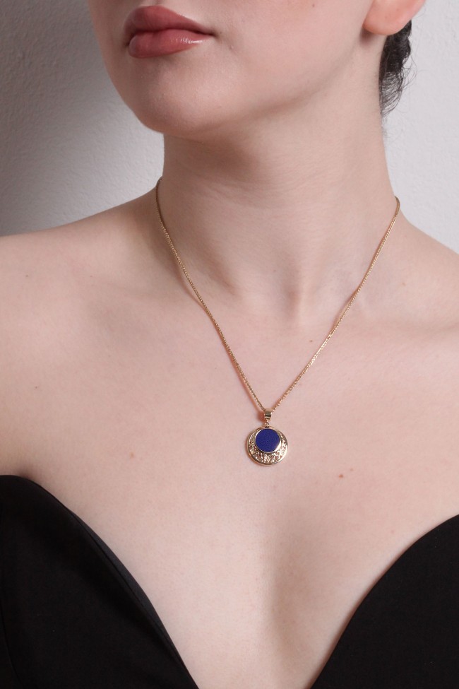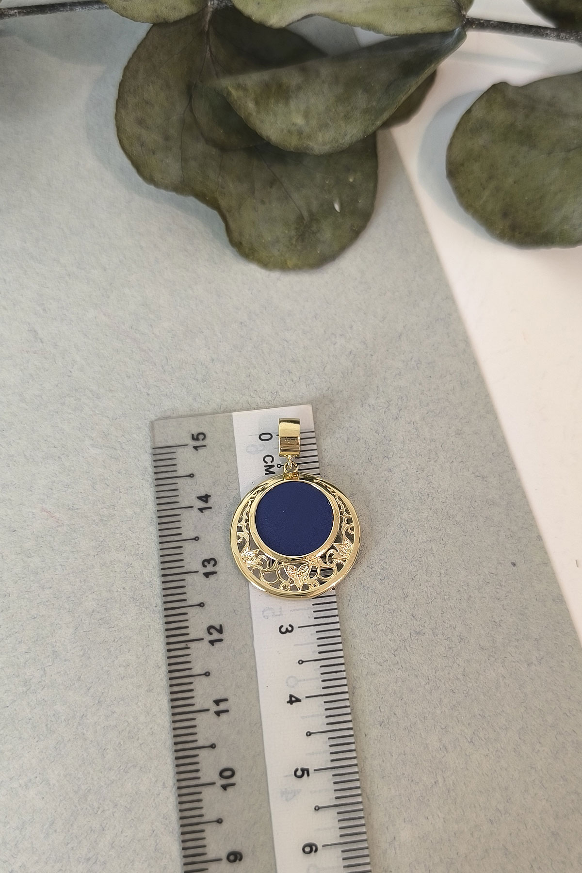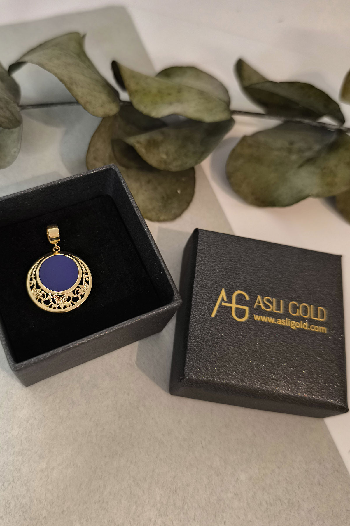 Antik Ve Modern Tarzı Beraberinde Taşıyan Oldukça Şık Bir Modele Sahip 4.60 Gr. Ağırlığında 14 Ayar Altın  Lacivert Mineli Kolye.