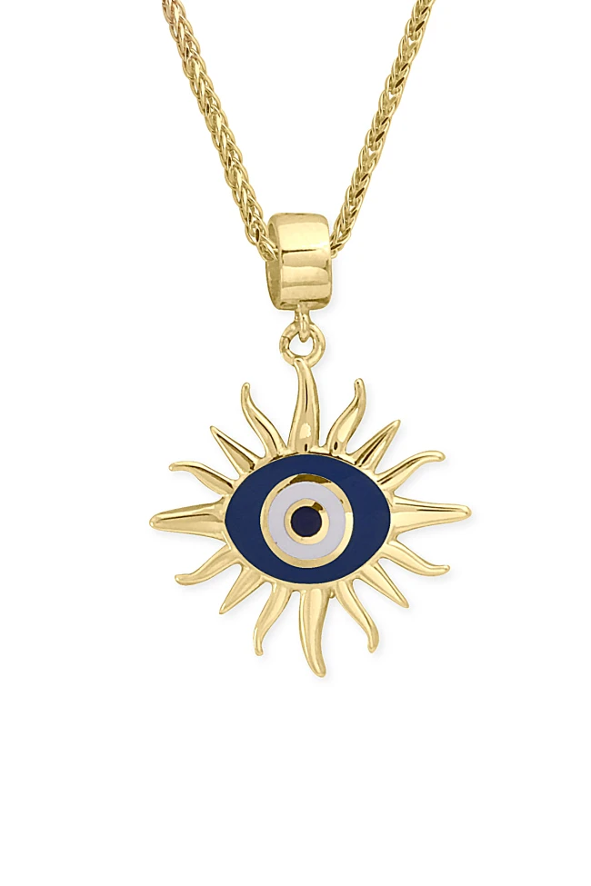 14 Ayar altın 4.35 gram ağırlığında şık ve gündelik kullanıma uygun 3 cm boyunda lacivert mineli göz modeliyle olduça şık bir duruşa sahip nazar güneş kolye.
