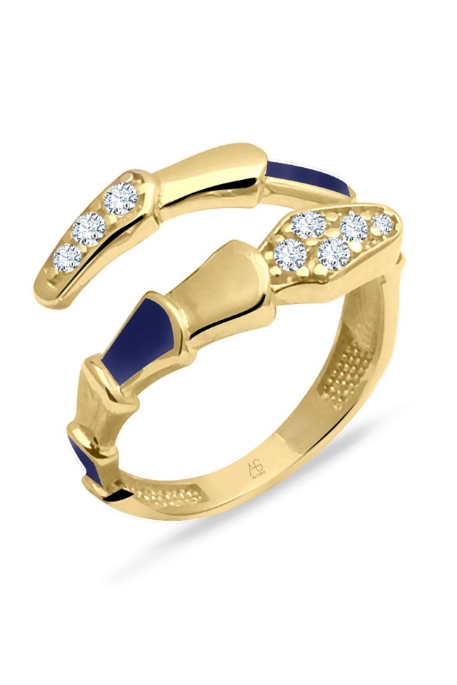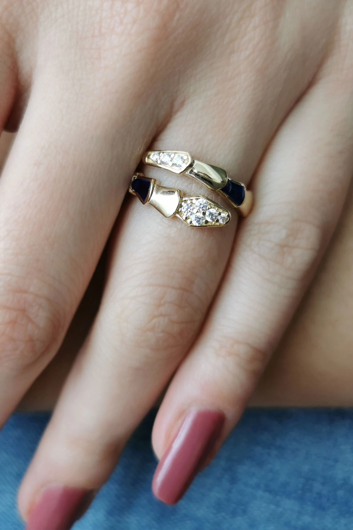 14 ayar lacivert mineli zirkon taş ile kombin edilmiş günlük kullanıma uygun stilinize hava katacak 2.70 gram ağırlığında altın yılan yüzük.