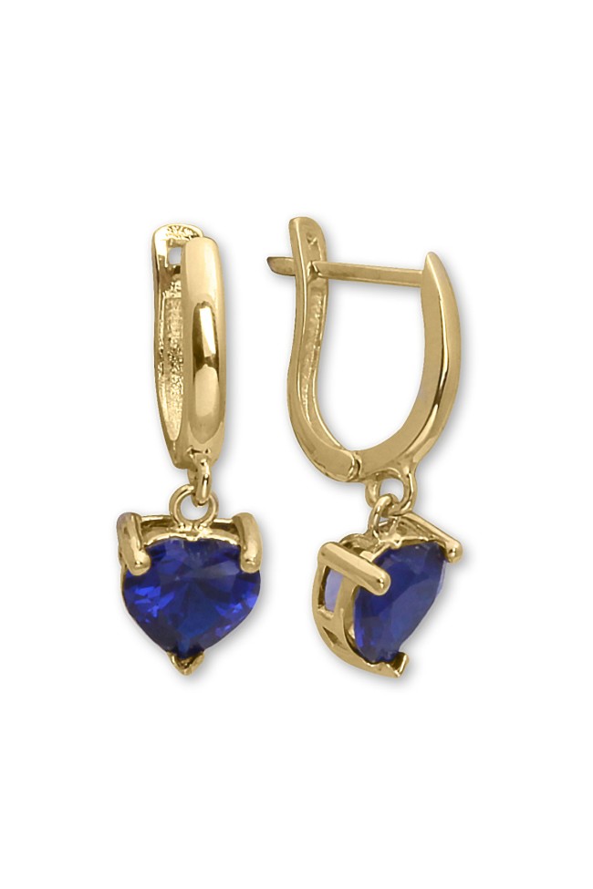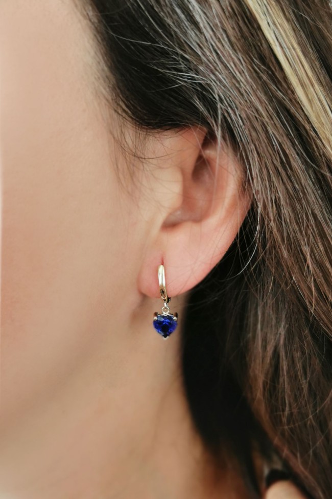 2.70 Gram Ağırlığında 2.2 Cm Lacivert Kalp Taşlı Sallantılı Minimal Model Zirkon Taşlı Günlük, Modern Ve Şık Bir Duruşa Sahip 14 Ayar Altın Tasarım Küpe.