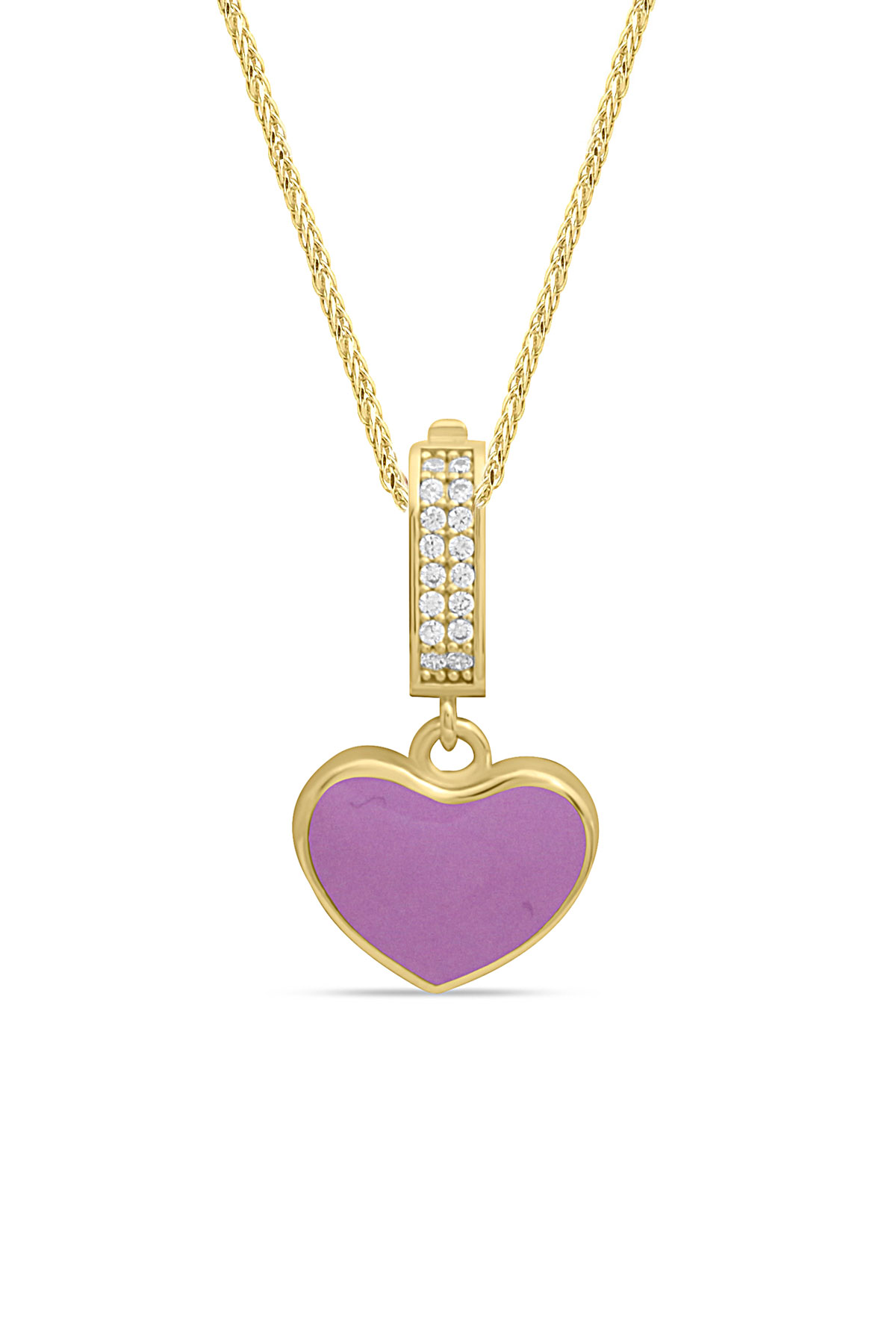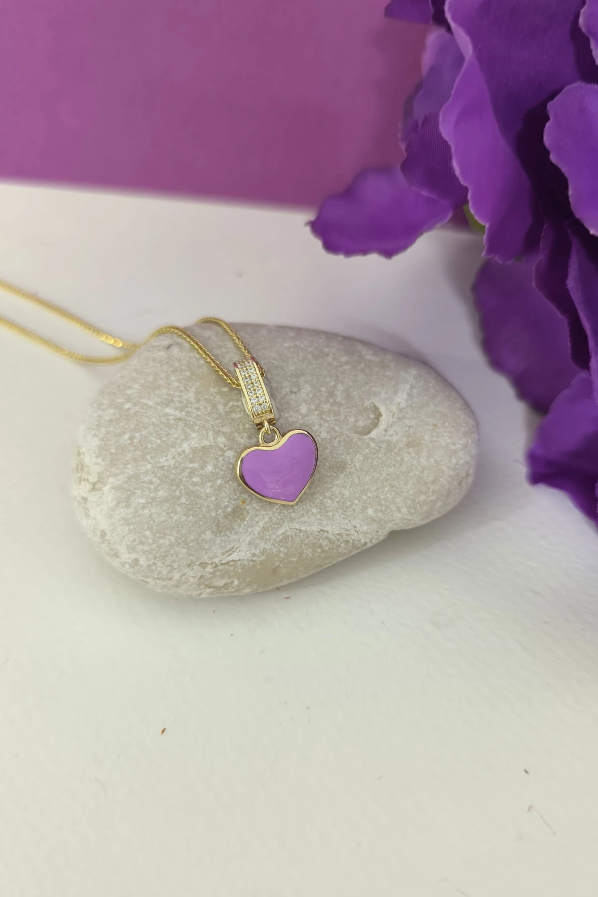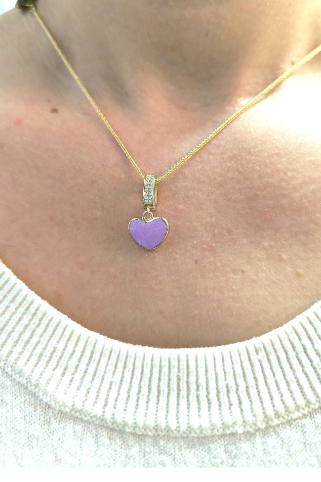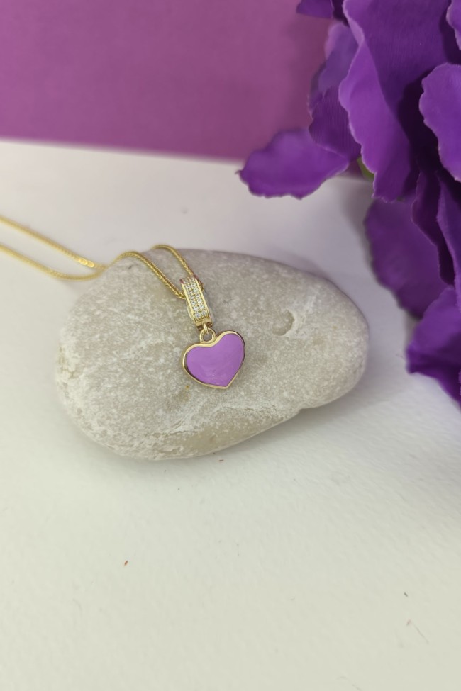 2.5 Cm Boyunda Kendinden 45 Cm Zincirli 14 Ayar Lila Mineli Renkli Spor Tasarıma Sahip Işıl Işıl Günlük Kullanıma Uygun 4.00 Gr. Ağırlığında Altın Kalpli Kolye.