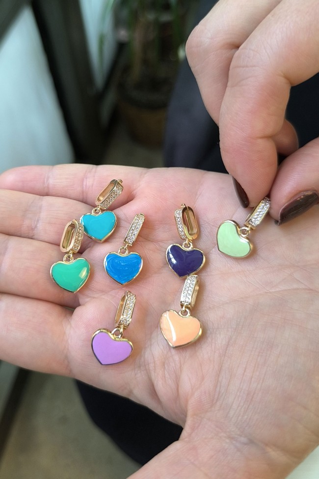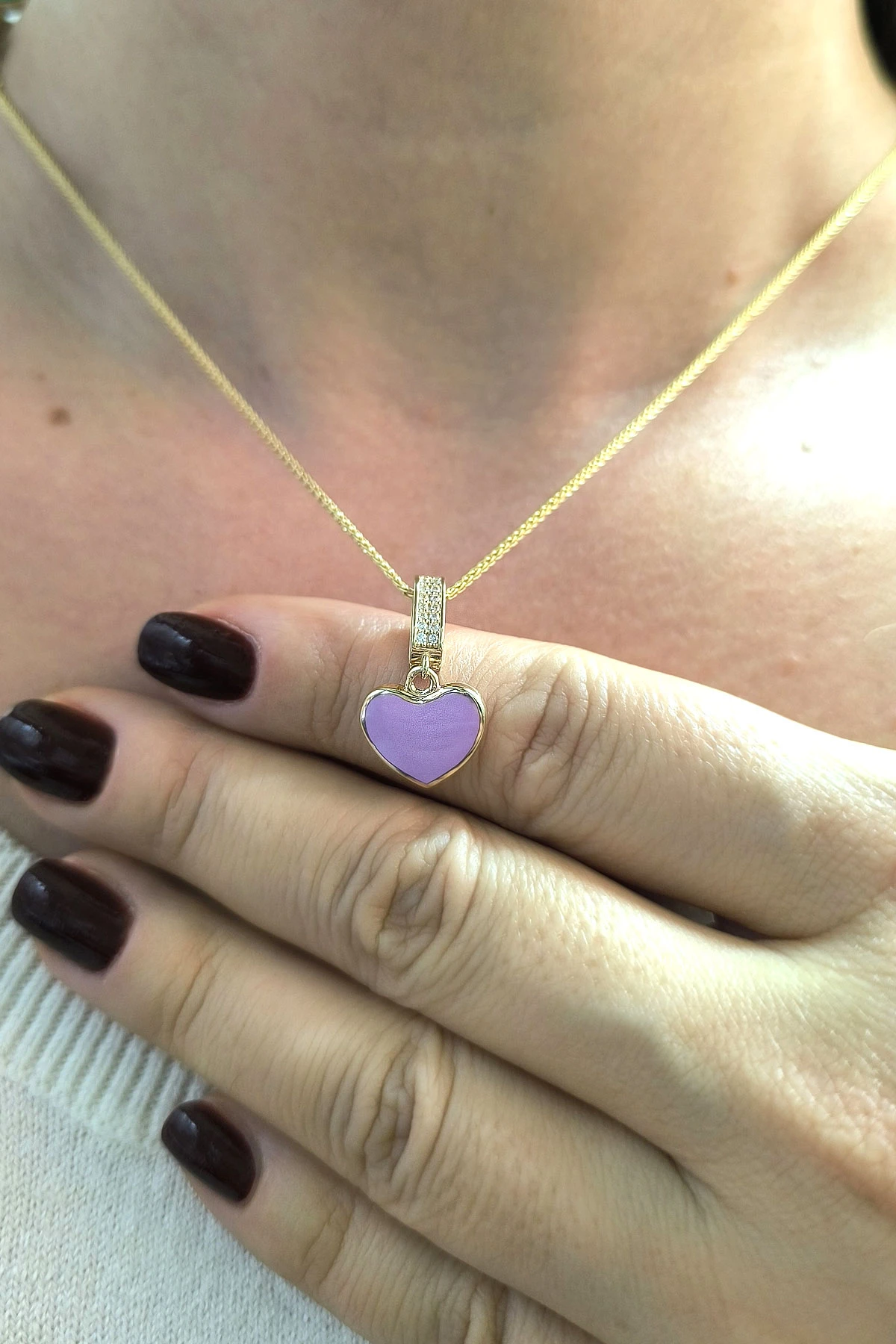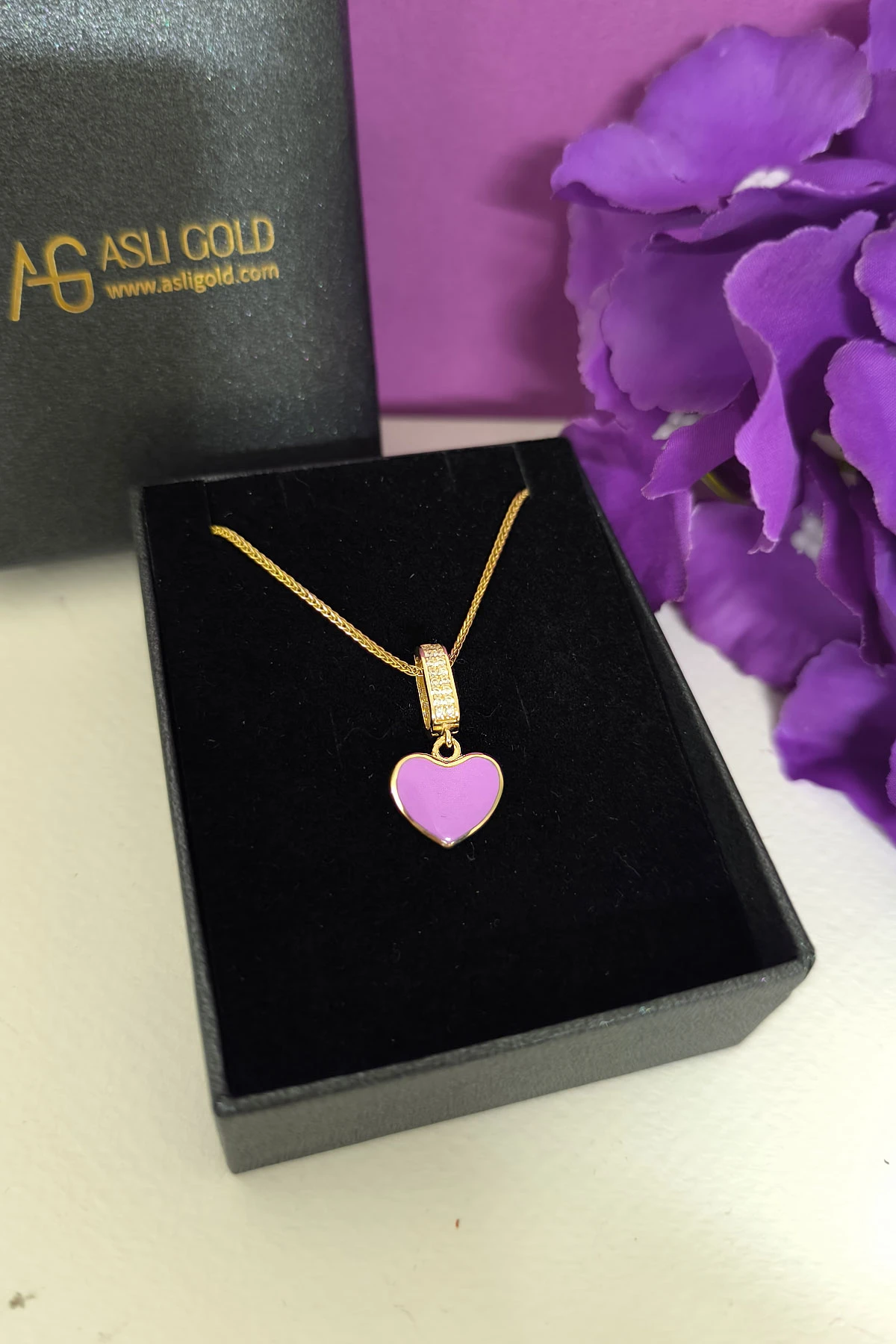 2.5 Cm Boyunda Kendinden 45 Cm Zincirli 14 Ayar Lila Mineli Renkli Spor Tasarıma Sahip Işıl Işıl Günlük Kullanıma Uygun 4.00 Gr. Ağırlığında Altın Kalpli Kolye.