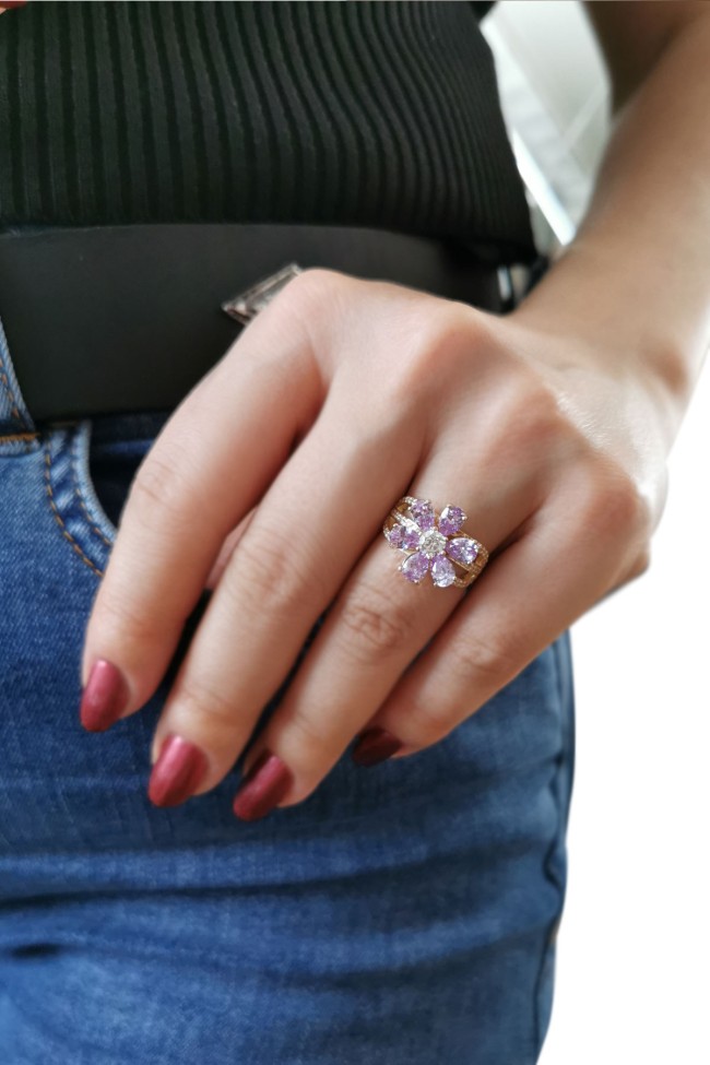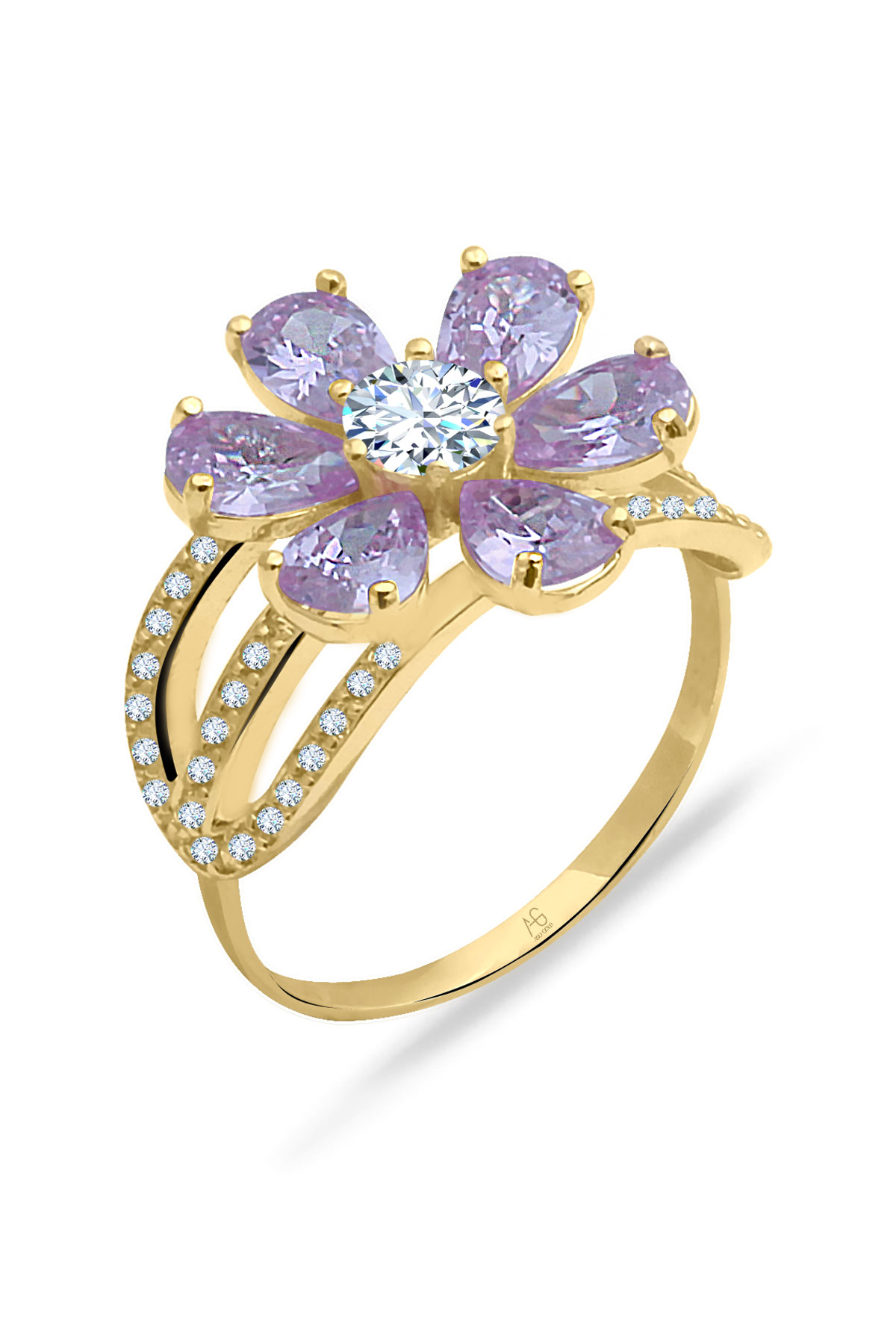 Kokusuyla büyüleyen saygı ve sevginin temsili, hayatta değer verdiğiniz sevdiklerinize verebileceğiniz anlam dolu 14 ayar altın ametist mor taşlı nergis çiçeği yüzük.