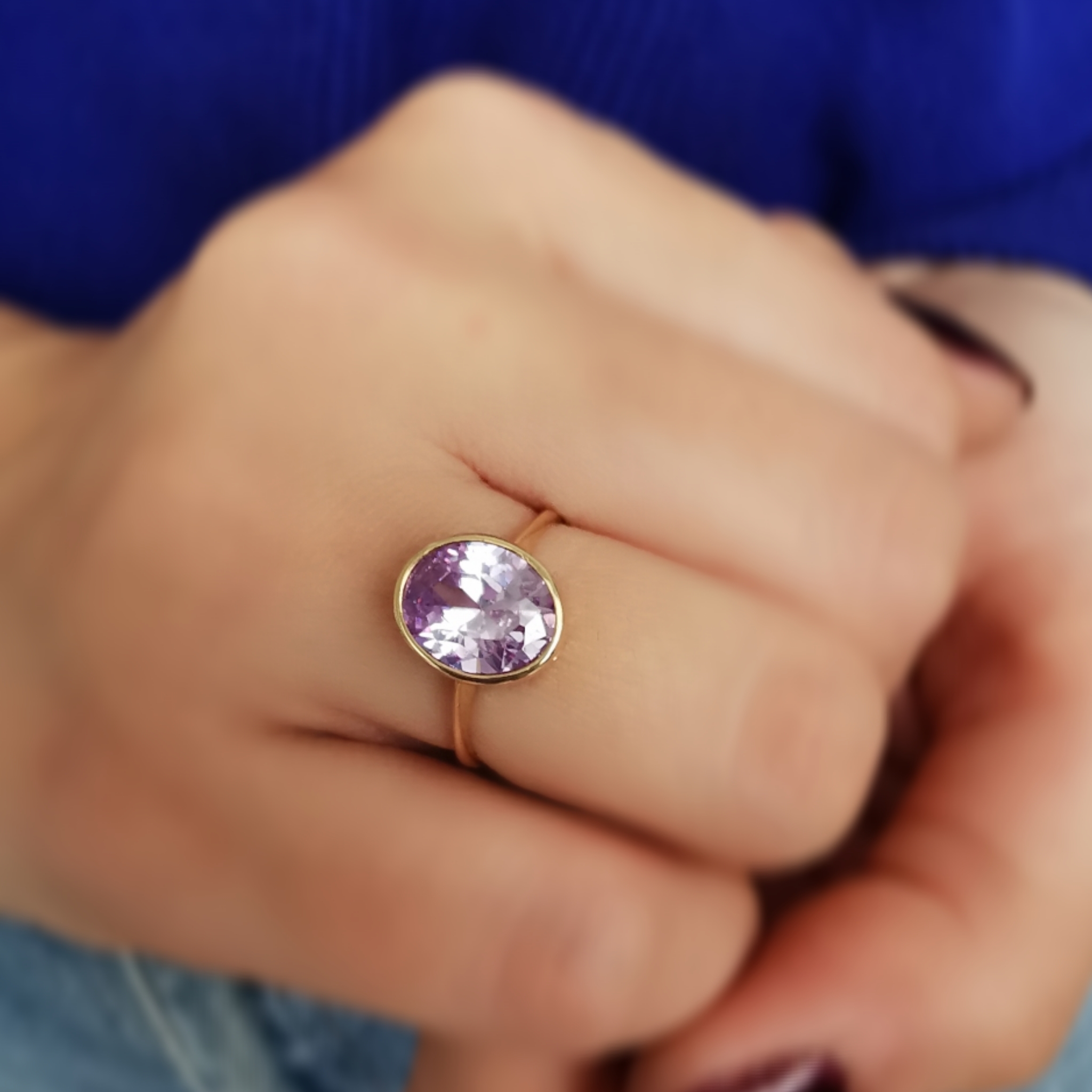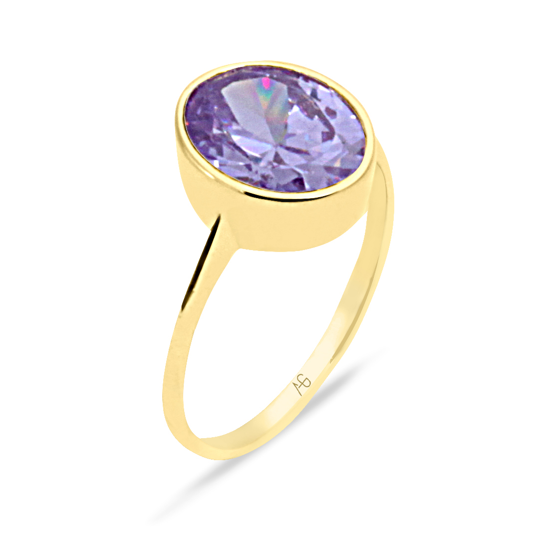 2.50 Gram Ağırlığında Oval Kesim Lila Taşlı Işıl Işıl İster Spor İster Fantazi Olarak Kullanabileceğiniz 14 Ayar Altın Oval Taşlı Yüzük.