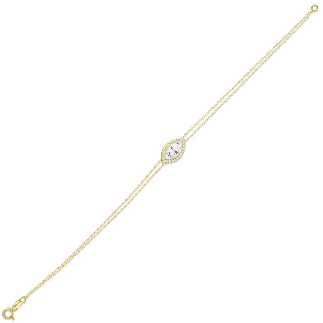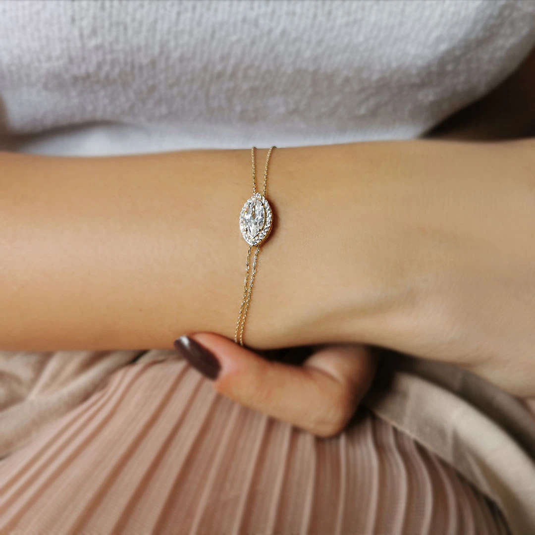 19 Cm boyunda spor hafif tasarımı ile günlük olarak da kullanabileceğiniz 2.00 gr ağırlığında 14 ayar altın markiz taş detaylı minimal bileklik.