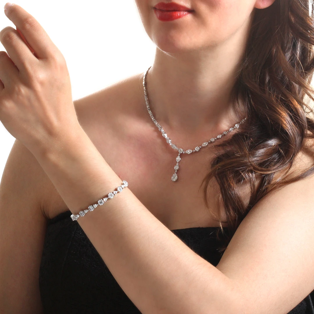 18 Ayar altın gösterişli 34,35 gram ağırlığında G-VS kalite 11.04 ct markiz ve yuvarlak kesim pırlantalı bileklik ve gerdanlıktan oluşan zarif ve modern tasarımlı düğün, nişan takı seti. Özel günlerinizde bir gün değil size bir ömür eşlik etsin.. *Ürünlerimiz faturalı ve sertifikalıdır güvenle satın alabilirsiniz, özel hediye kutusunda ücretsiz kargo ile gönderilecektir.