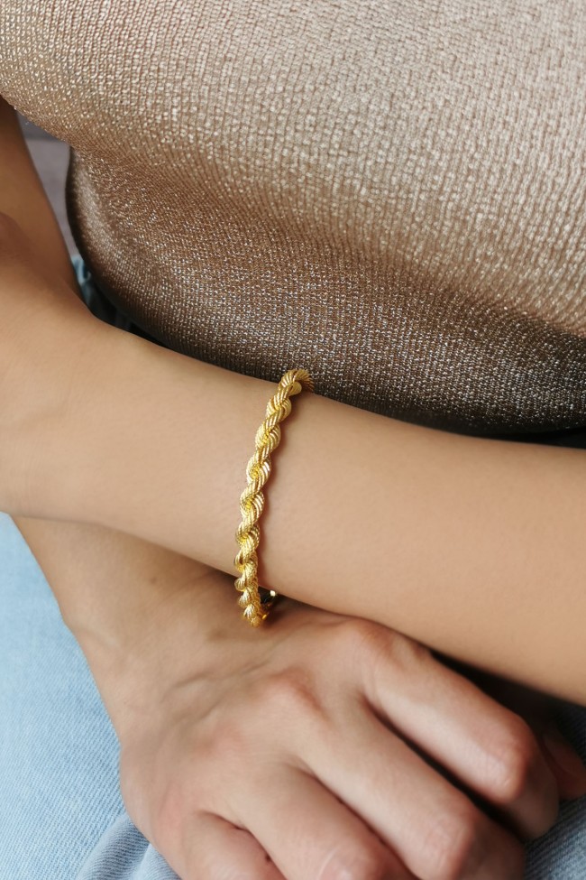 Göz Alıcı Tasarımı İle 20 Cm Boyunda Işıl Işıl 6.90 Gr. Ağırlığında 14 Ayar Altın Mat Simli Kalın Ve Gösterişli Halat Bileklik.