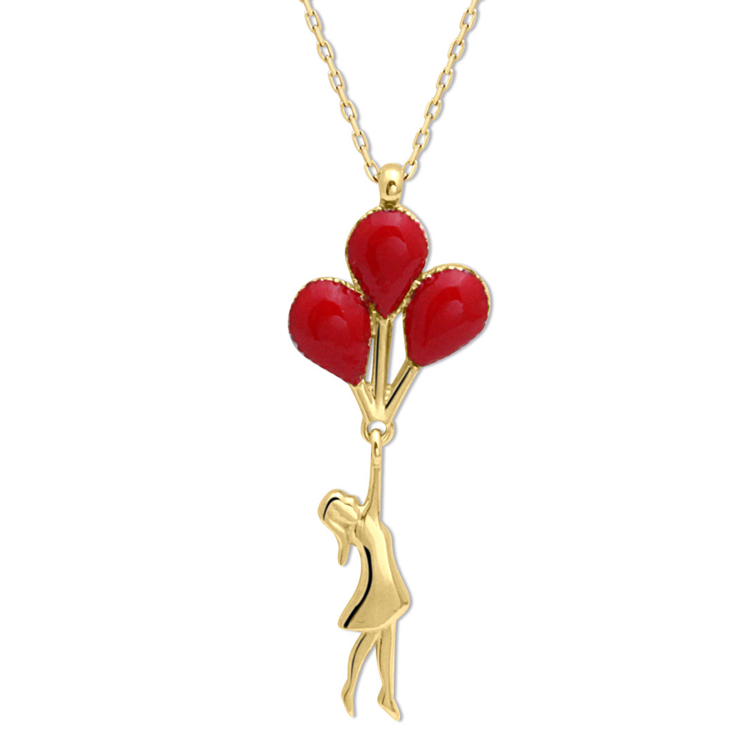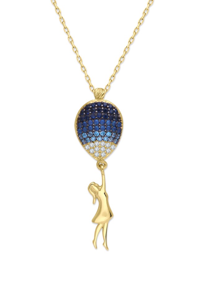 Umudun Rengini Simgeleyen Mavi Beyaz Zirkon Taşlı 3.6 Cm Boyunda Kendinden 45 Cm Zincirli 14 Ayar Işıl Işıl Günlük Kullanıma Uygun 2.70 Gr. Ağırlığında Altın Baloncu Kız Kolye.