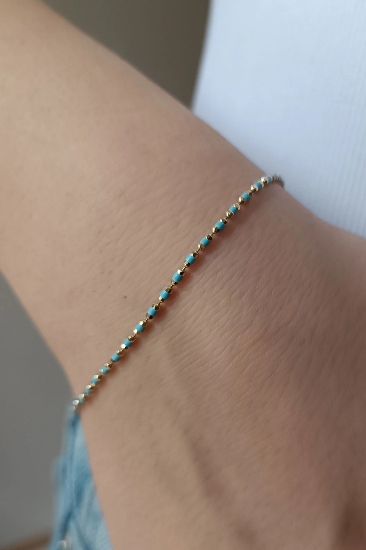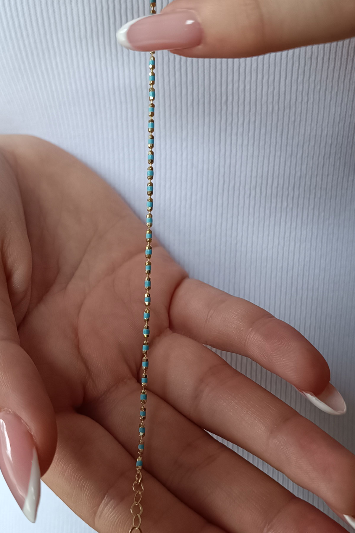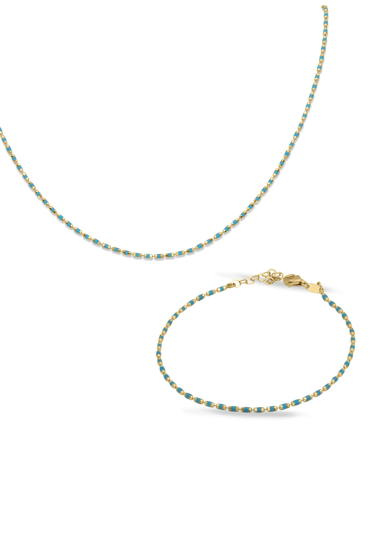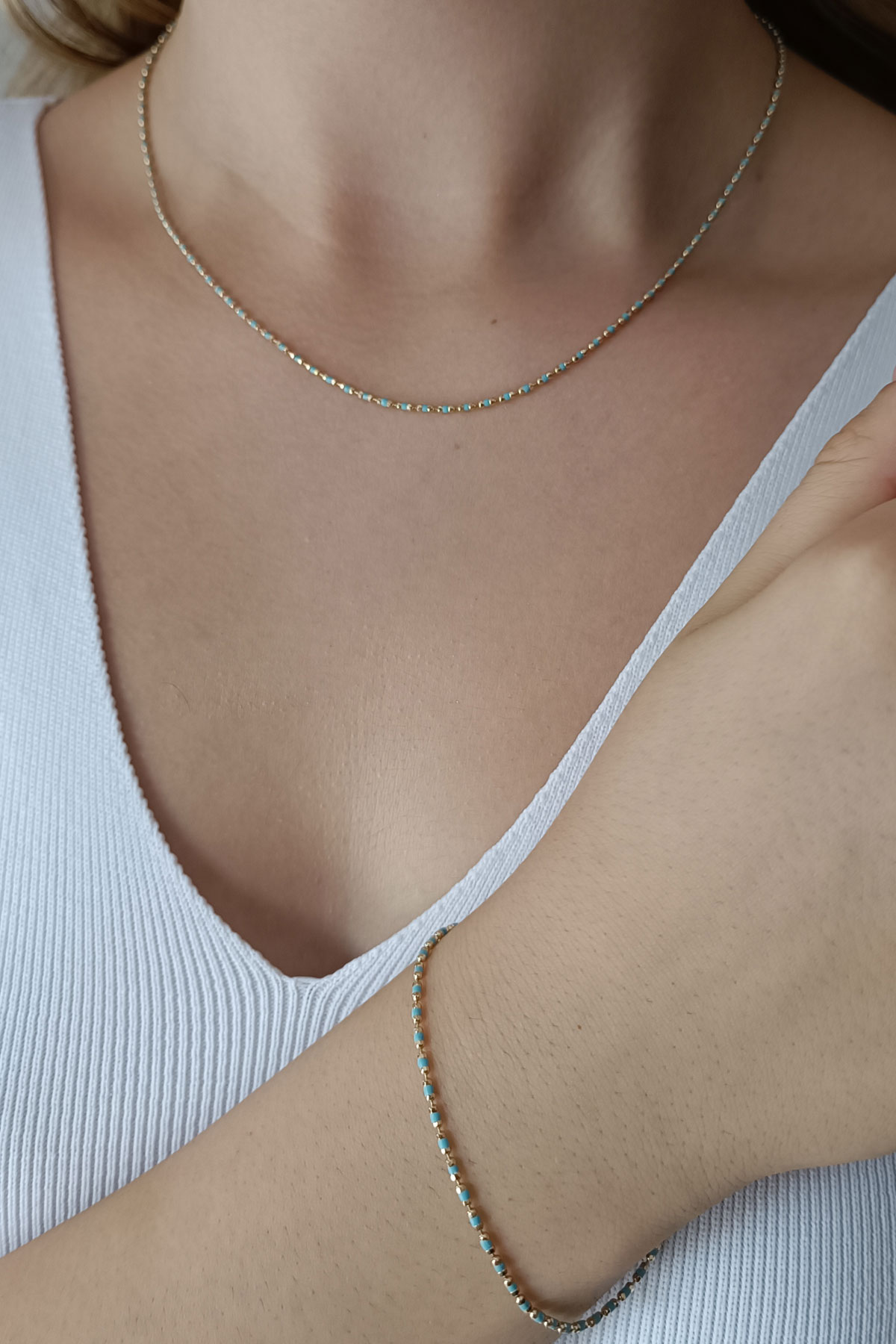 5.90 Gram Ağırlığında 14 Ayar Mineli Model El İşçiliği İle Özel Olarak Üretilen Altın İtalyan Tasarım Minimal Bileklik Kolye İkili Takım.