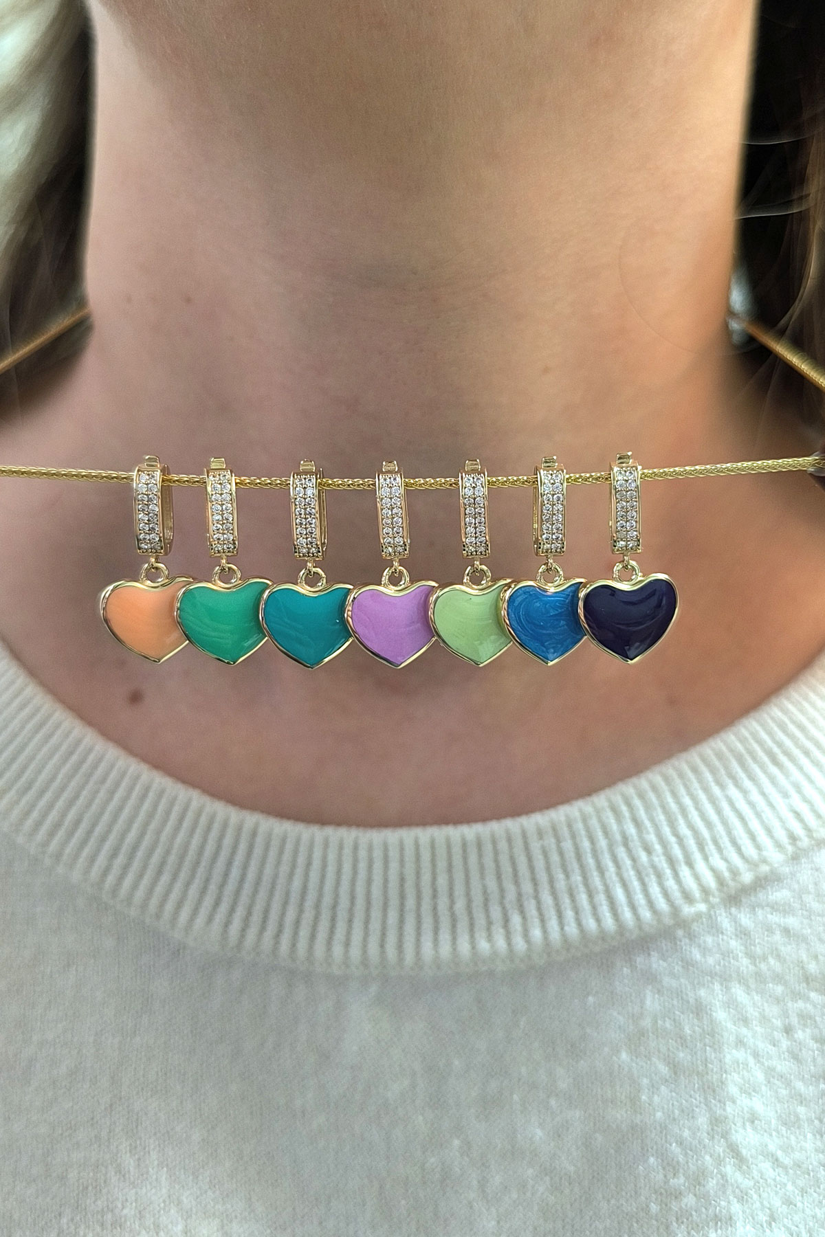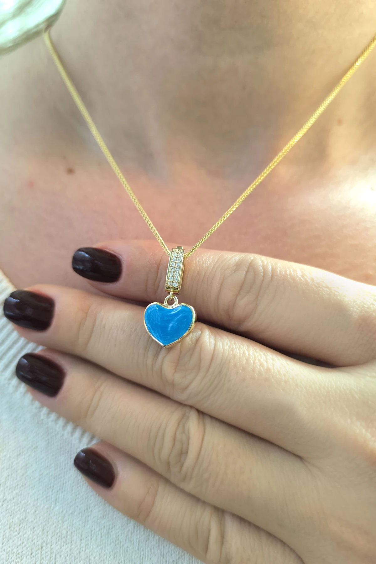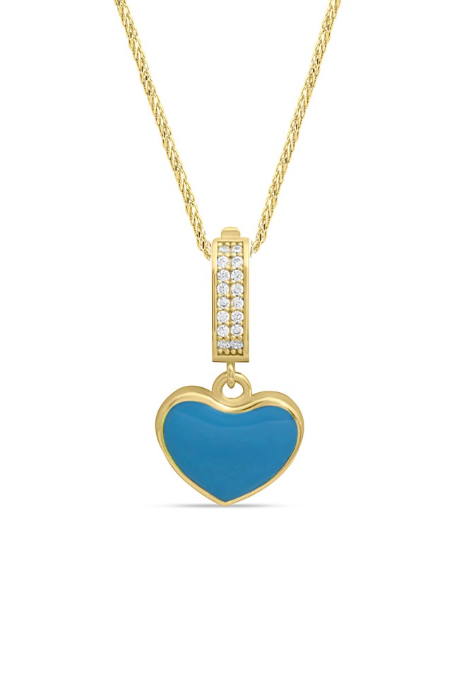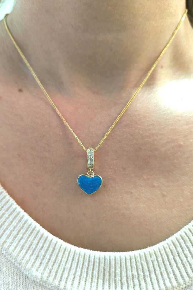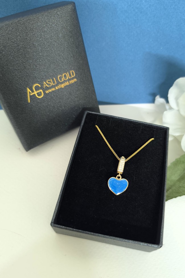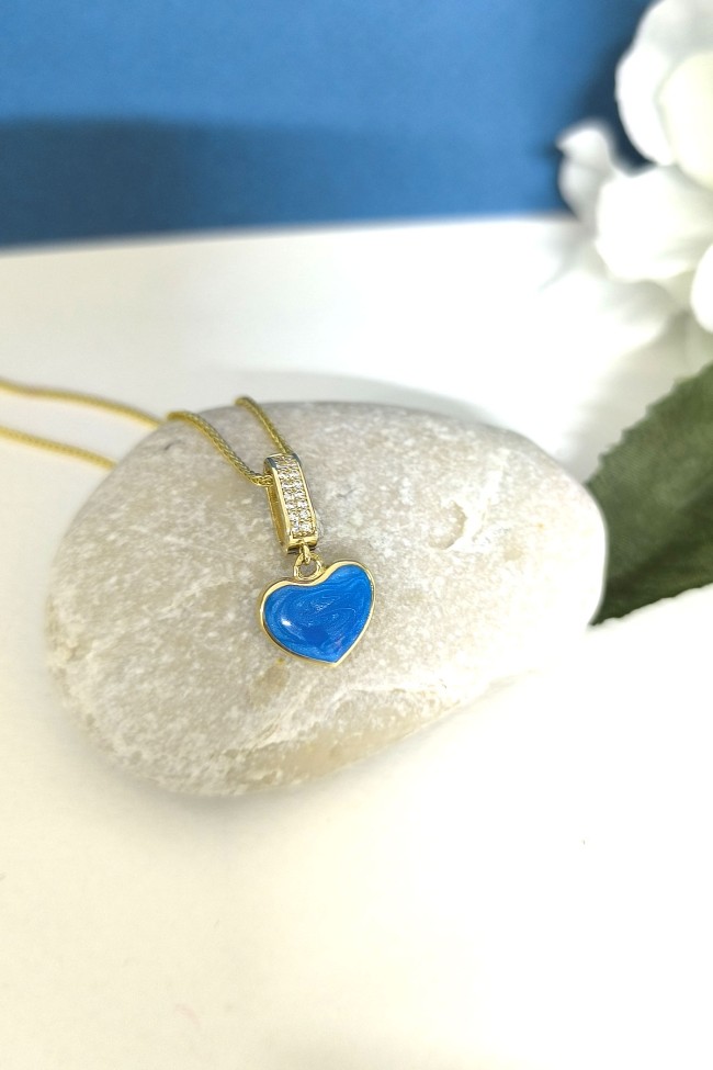 2.5 Cm Boyunda Kendinden 45 Cm Zincirli 14 Ayar Mavi Mineli Renkli Spor Tasarıma Sahip Işıl Işıl Günlük Kullanıma Uygun 4.00 Gr. Ağırlığında Altın Kalpli Kolye.