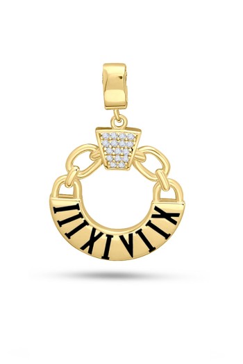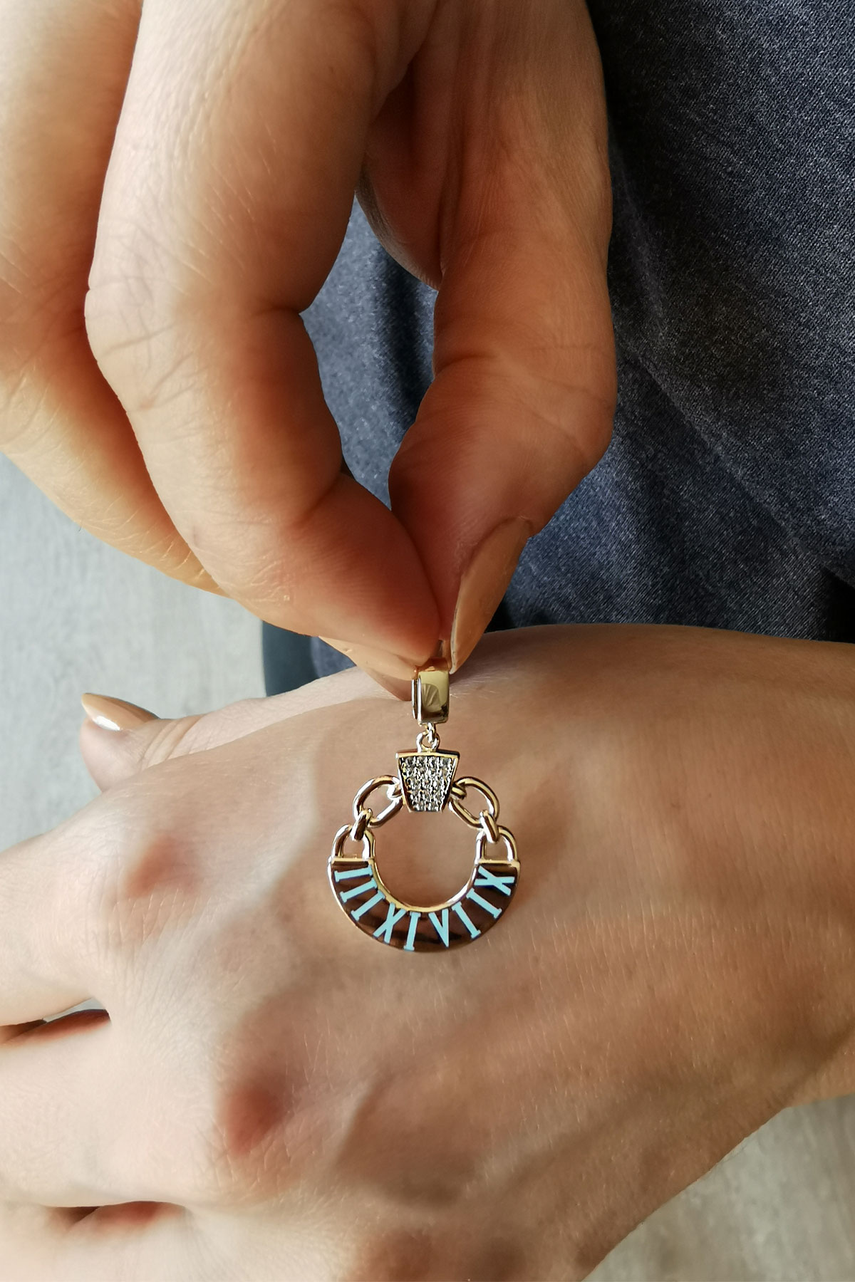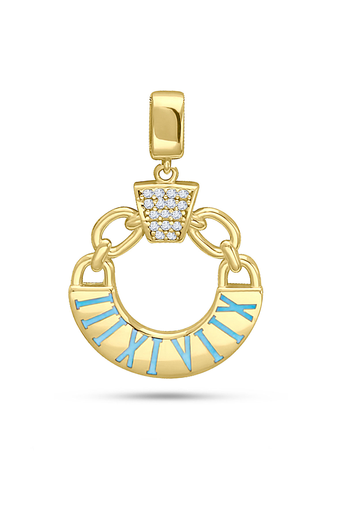 3.30 gr. 3 cm boyutunda turkuaz mine roma rakamlı model 14 ayar altın tasarım kolye ucu.