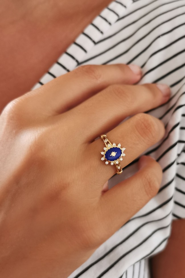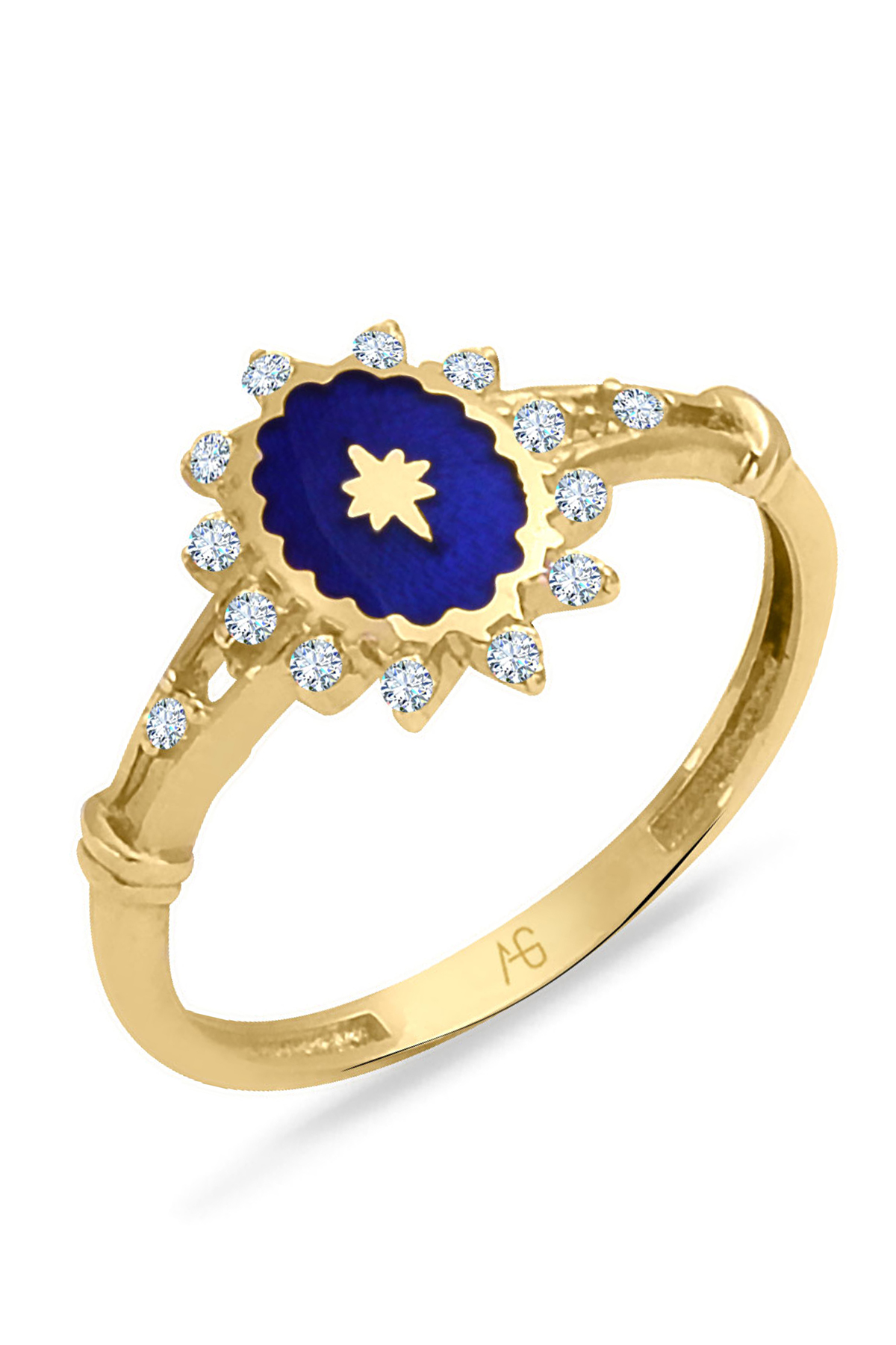 1.85 Gram Ağırlığında Sade Tasarımlı Şık Bir Tarzı Olan Günlük Kullanıma Uygun 14 Ayar Altın Mavi Mineli Zirkon Taşlı Yüzük.