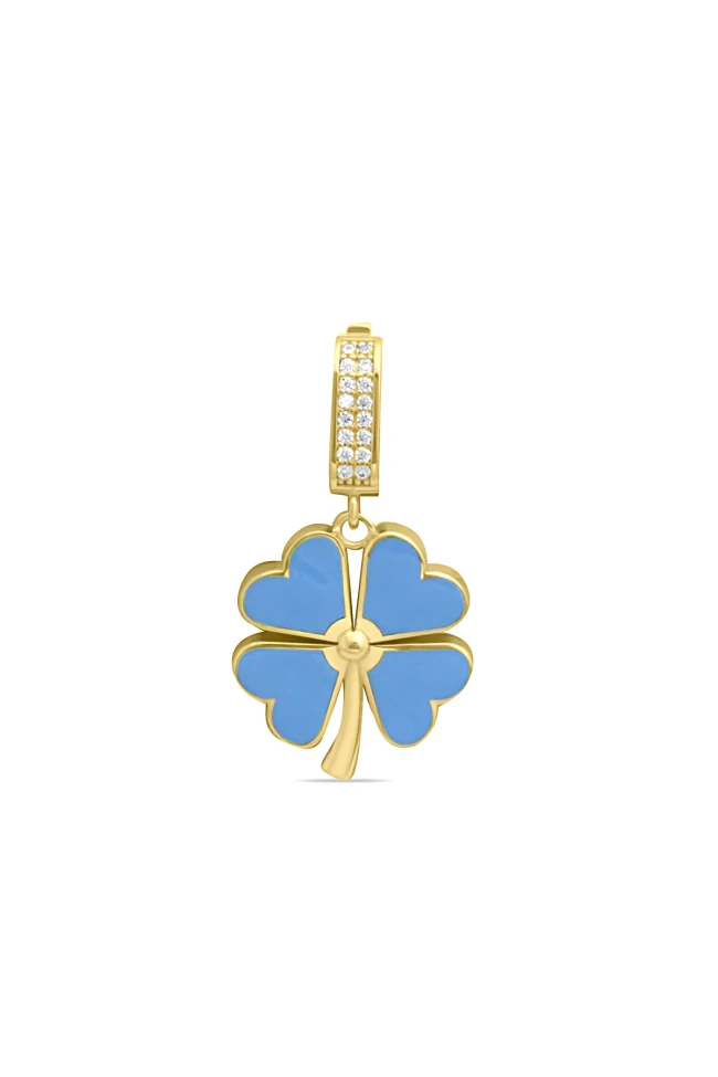 3.15 gr. 3 cm boyutunda zirkon taşsız model 14 ayar altın mavi mineli yonca model charm kilit kolye ucu. Farklı kolyelerinizle bir arada kombine olarak kullanabileceğiniz harika ve gösterişli bir model.
