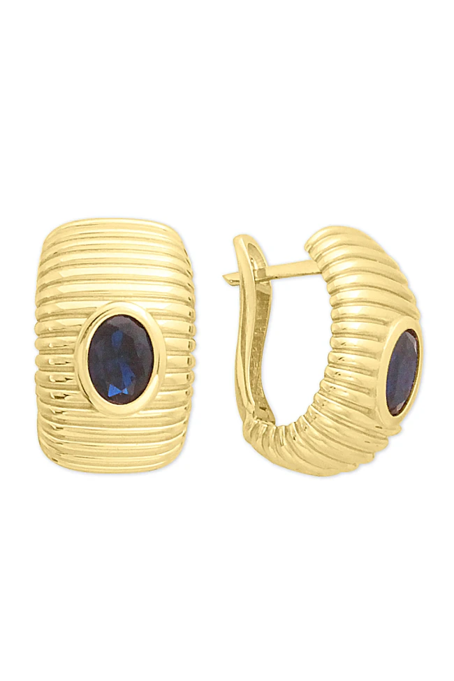 14 Ayar bombeli renkli mavi taşlı tasarımı ile şık duruşa da sahip günlük kullanıma uygun 6.40 gram ağırlığında altın küpe.