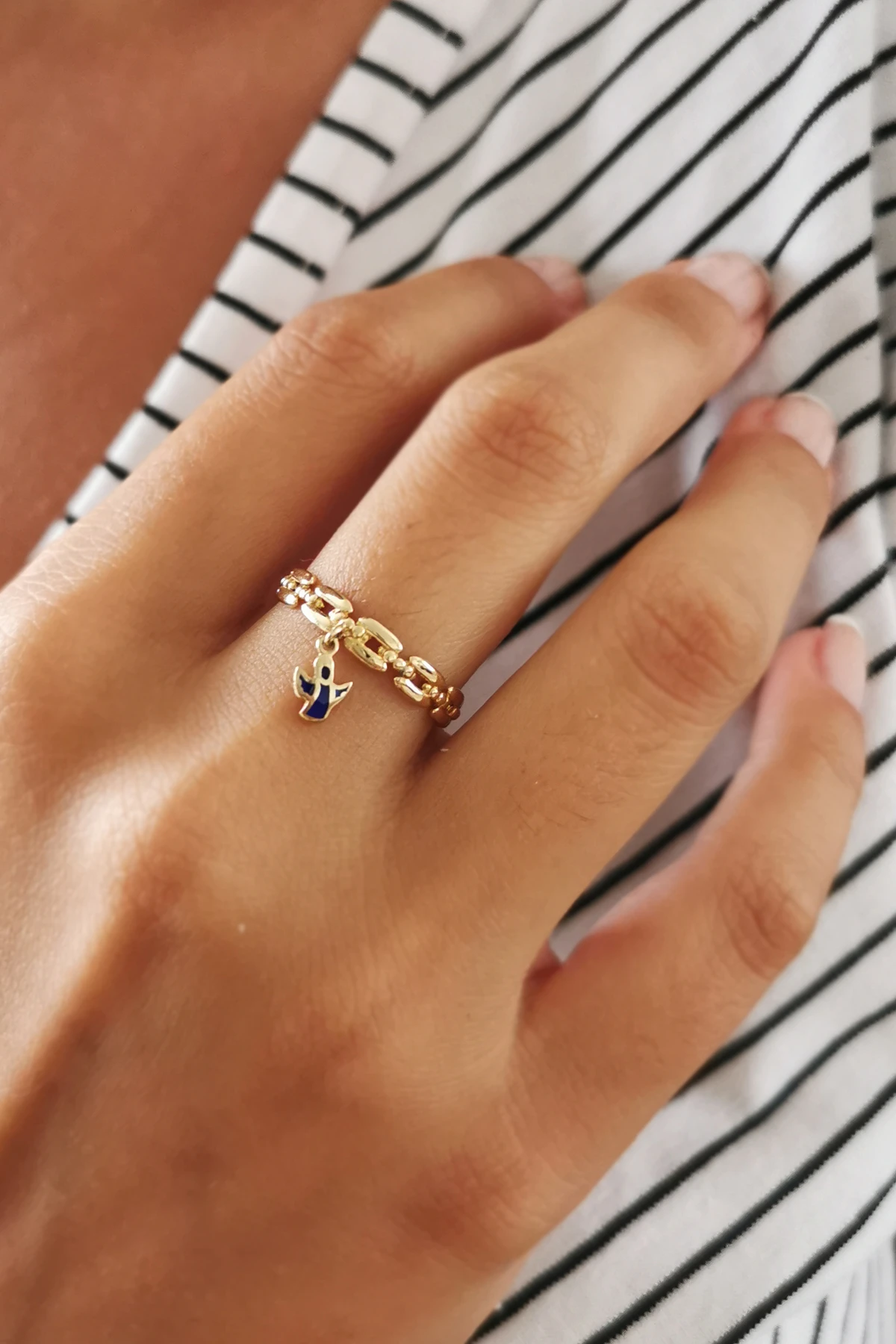 1.90 Gram Ağırlığında Sade Tasarımlı Modern, Spor Bir Tarzı Olan Günlük Kullanıma Uygun 14 Ayar Altın Melek Sallantılı Zincir Yüzük.