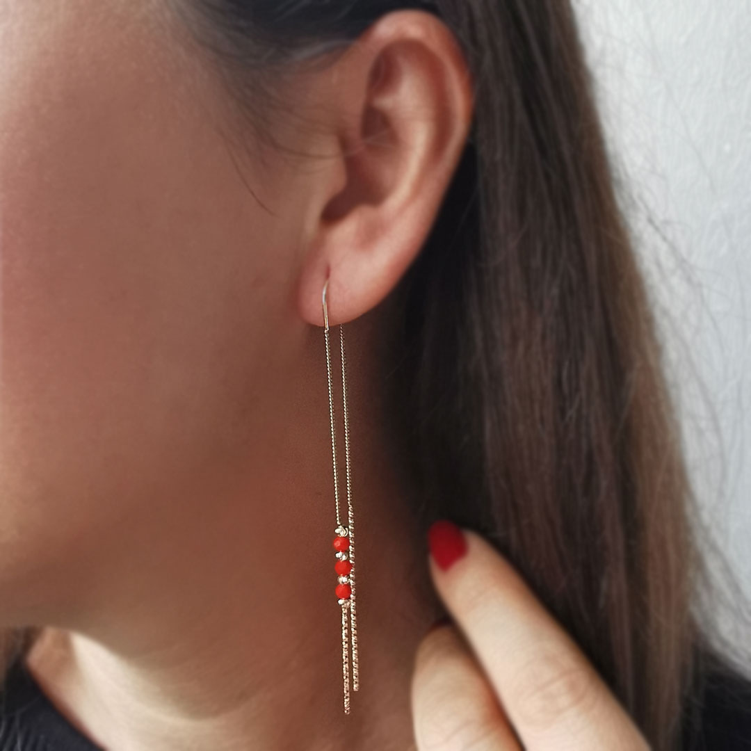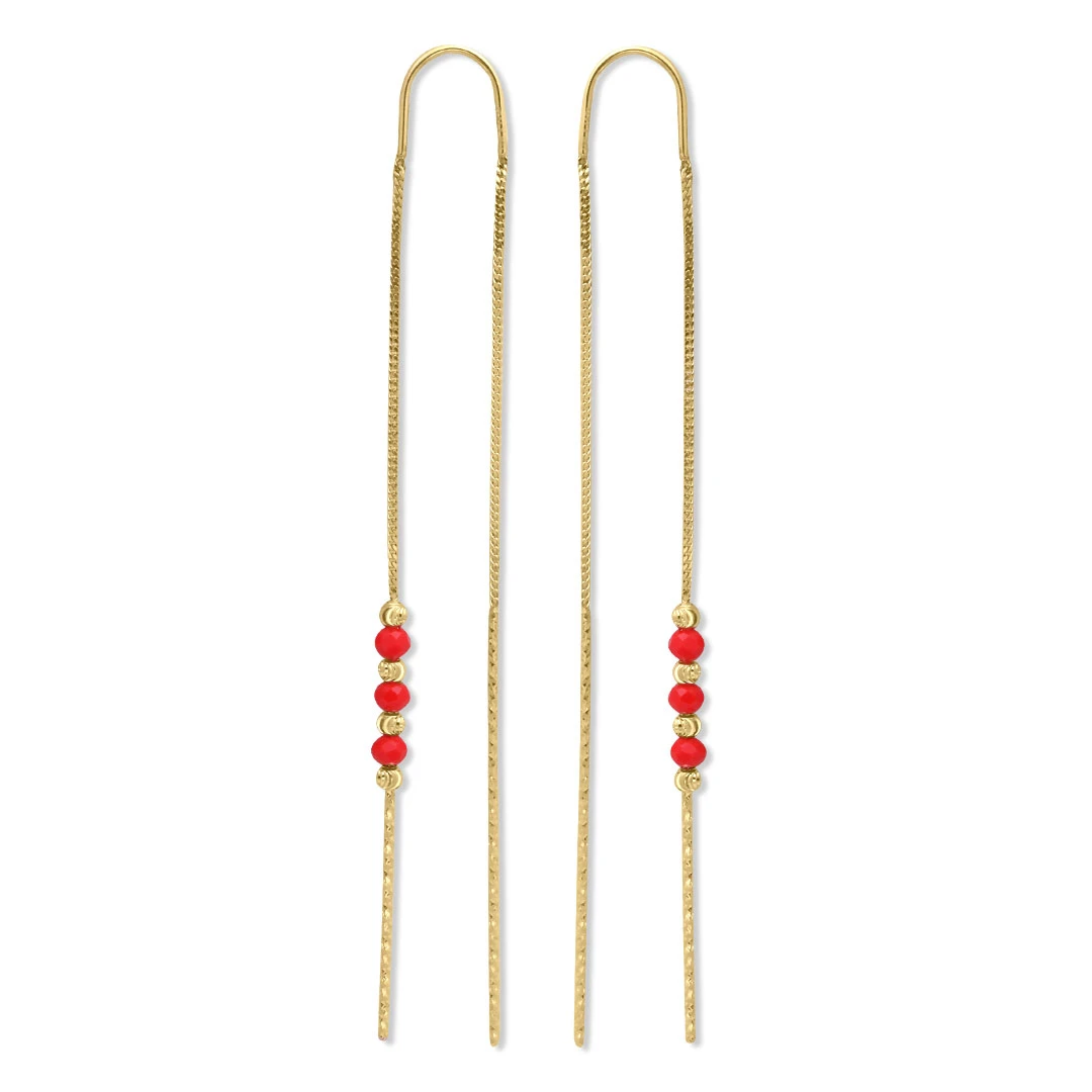 2.85 Gram Ağırlığında 9 Cm Boyunda Mercan Zirkon Taşlı Sallantılı Model 14 Ayar Altın Zincirli Spor Küpe.