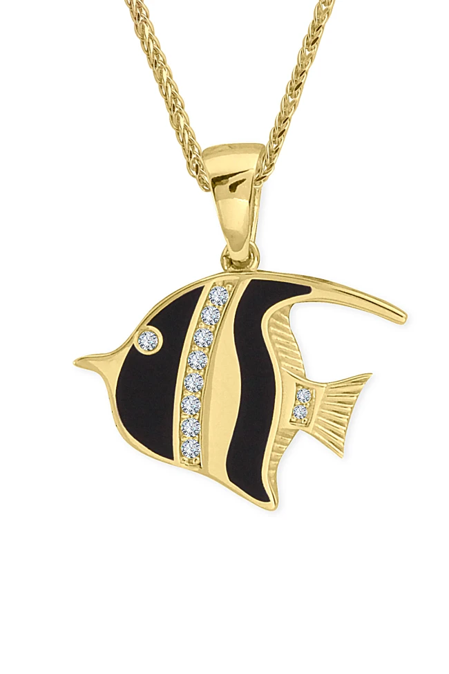 14 Ayar altın 5.00 gram ağırlığında şık ve gündelik kullanıma uygun 2.7 cm boyunda siyah mineli balık kolye.
