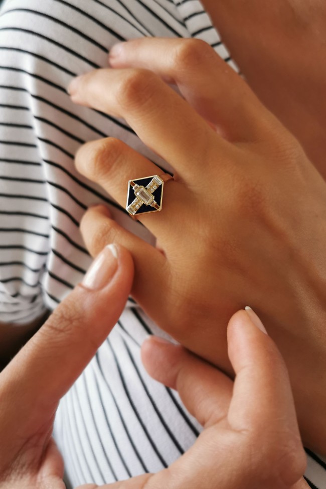 2.25 Gram Ağırlığında Mineli Modeli İle Oldukça Hoş Bir Havaya Sahip, Farklı Tarzına Eşik Eden Baget Taşlarıyla Günlük Kullanıma Uygun 14 Ayar Altın Kadın Yüzük.