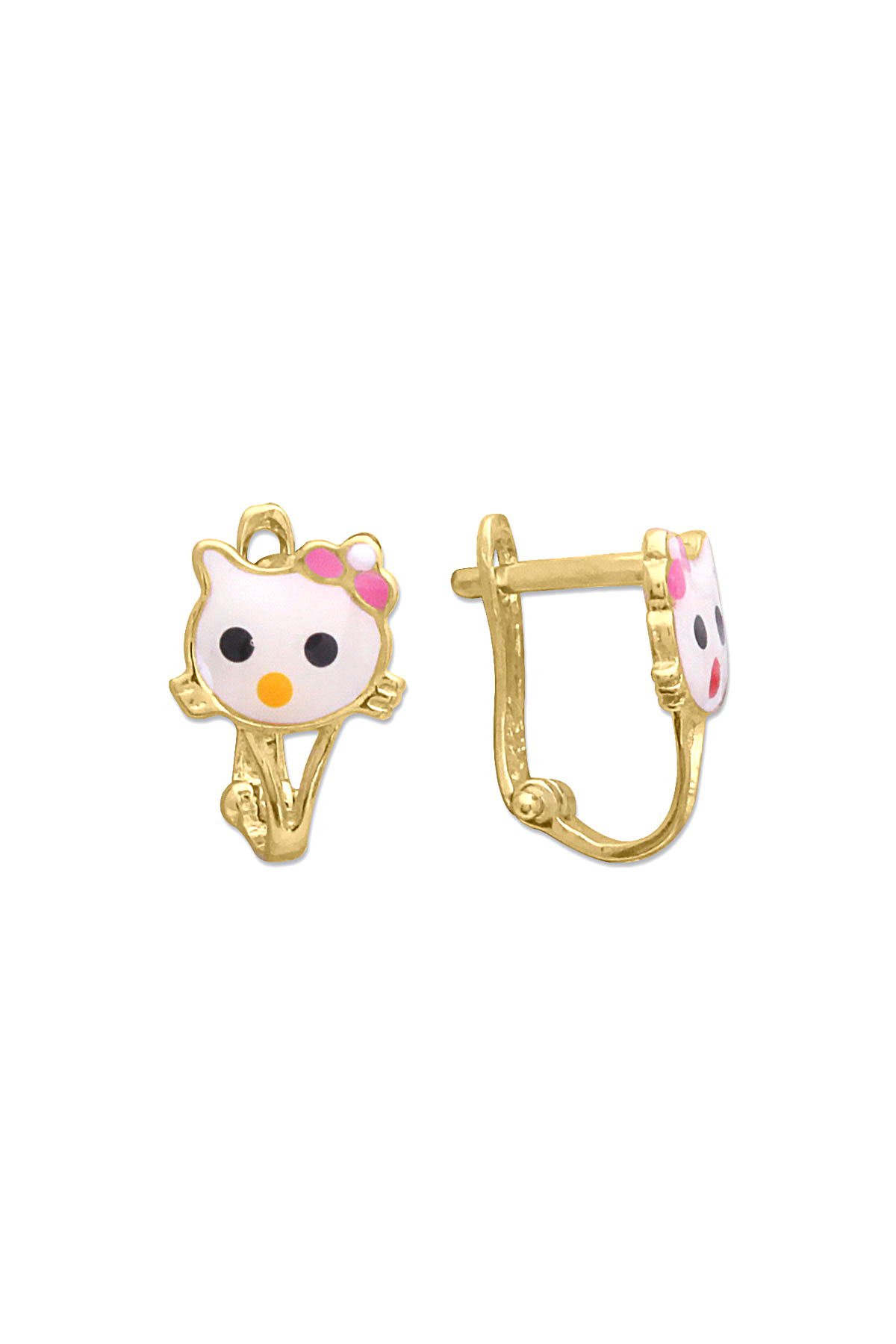 Kitty model sevimli tasarımıyla taşsız mineli 1.3 Cm boyunda günlük olarak kullanıma uygun 14 ayar 1.50 gr ağırlığında altın klipsli çocuk küpesi.