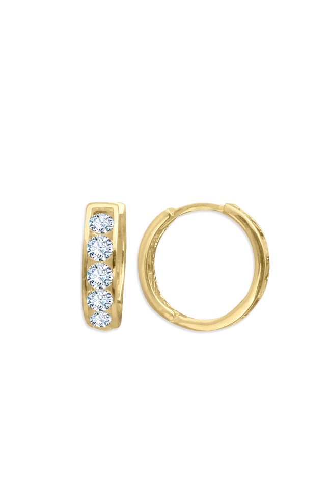 1 Cm boyunda beyaz zirkon taşlı halka model günlük olarak kullanıma uygun 14 ayar 1.10 gr ağırlığında altın "C" klips çocuk küpesi.