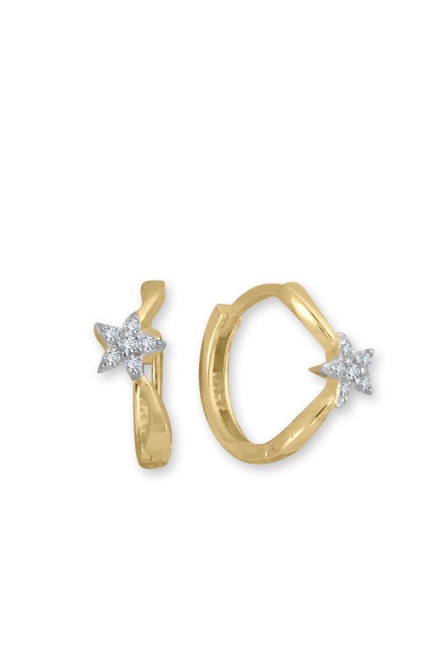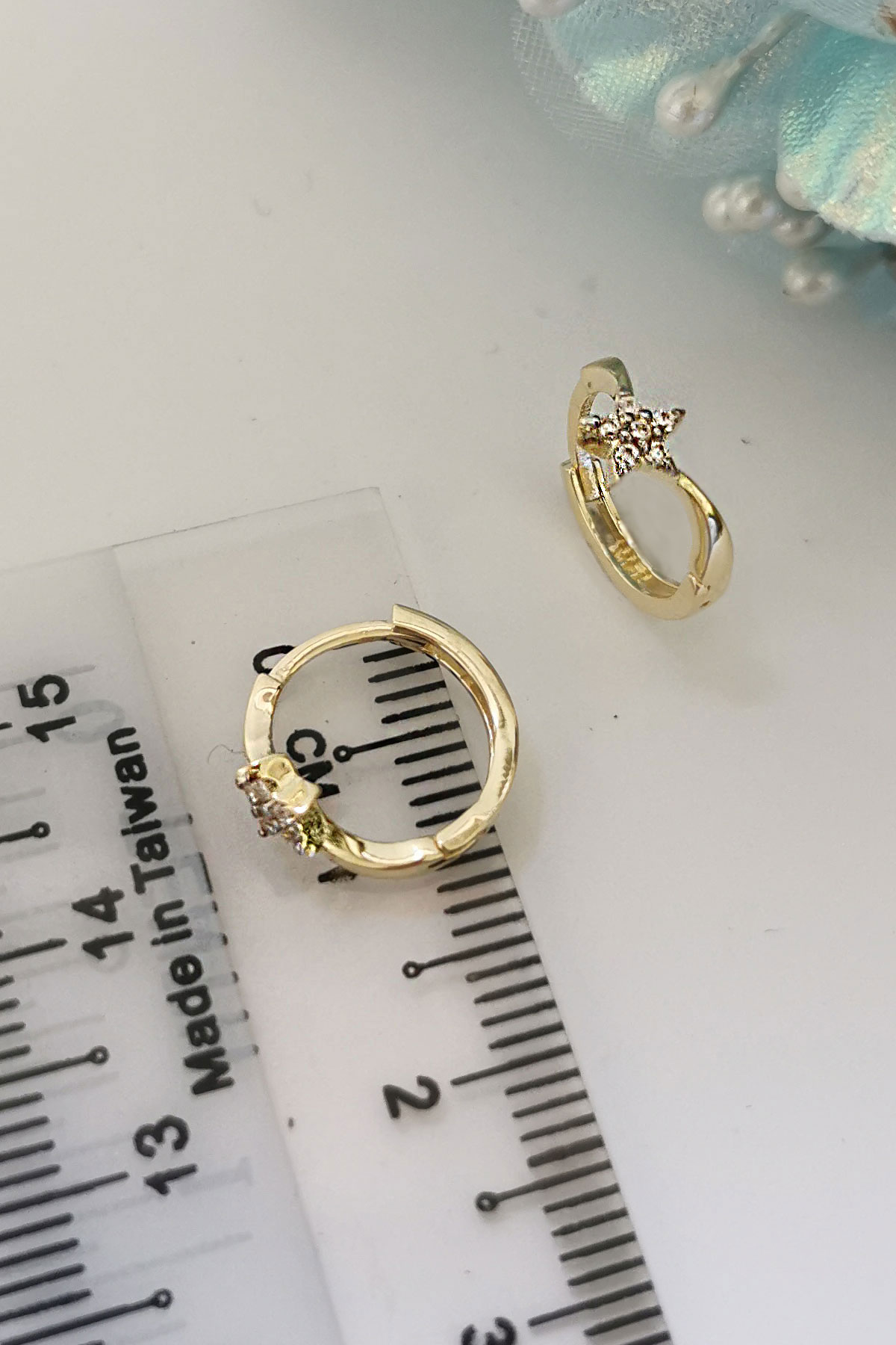 1 Cm boyunda zirkon taş detaylı ışıl ışıl 14 ayar 1.30 gr ağırlığında altın halka taşlı yıldız model çocuk küpesi.