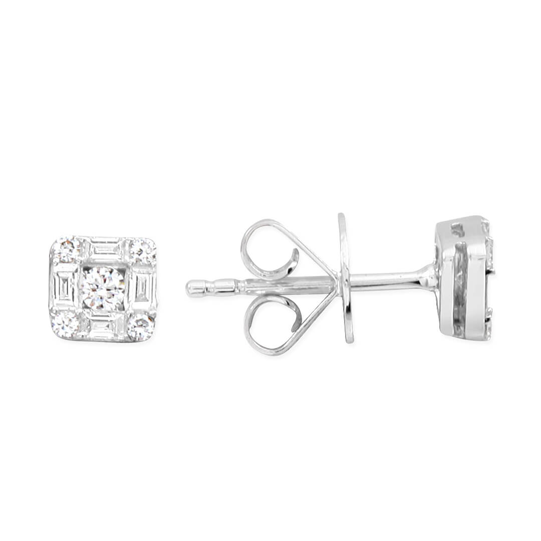 Minimal tasarımıyla günlük kullanıma uygun 18 ayar beyaz altın baget taş detaylarına sahip effet küpe ile stilinize zarif bir detay katacaksınız.