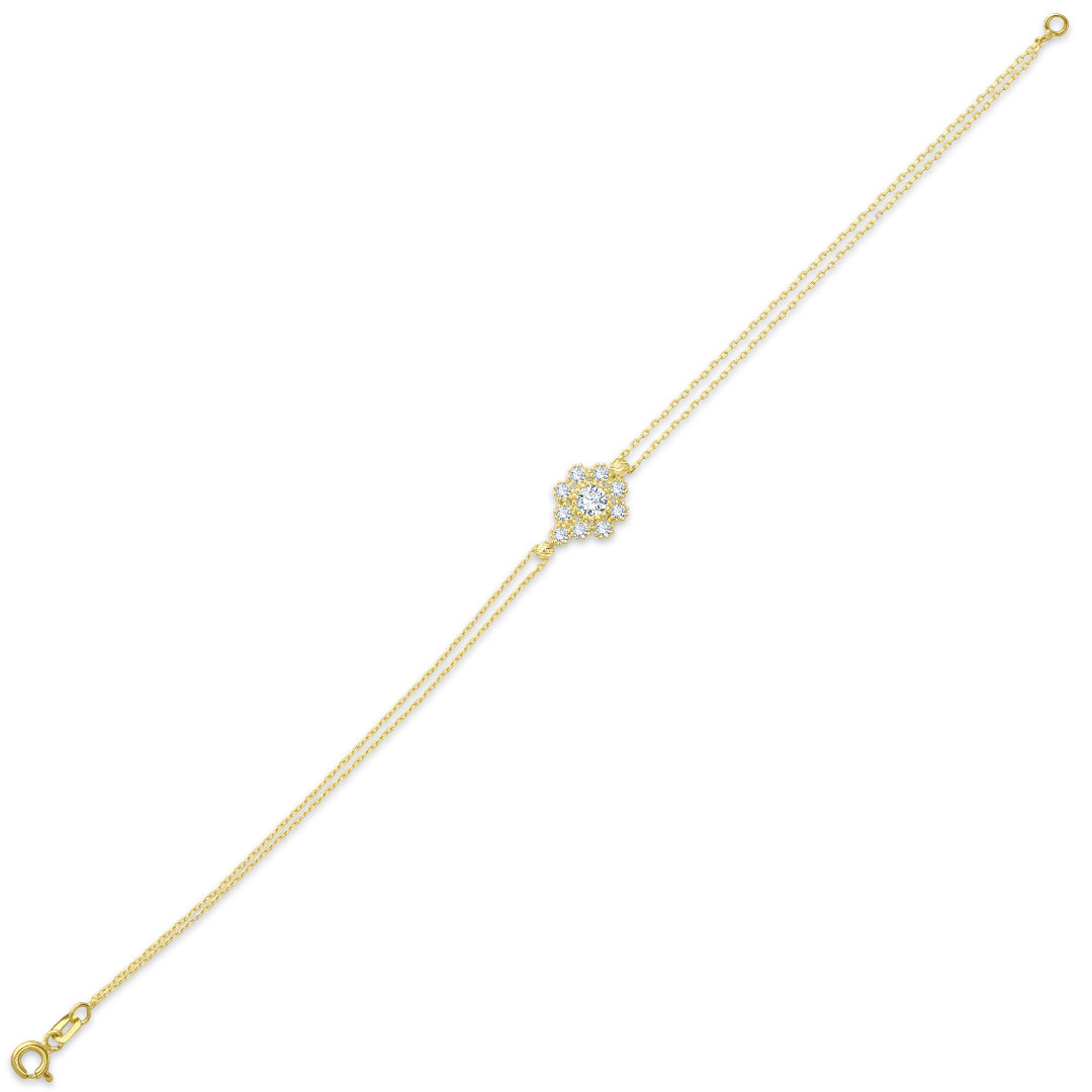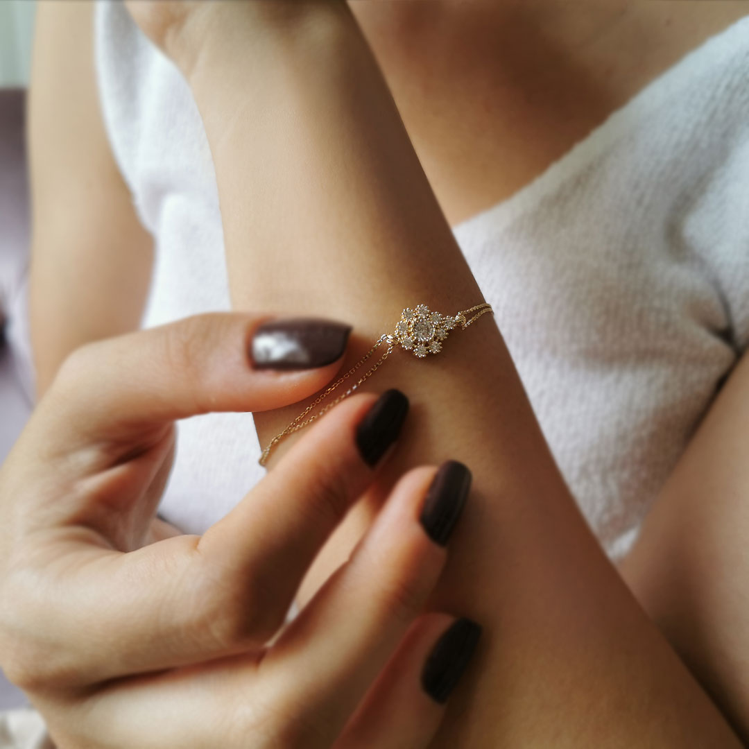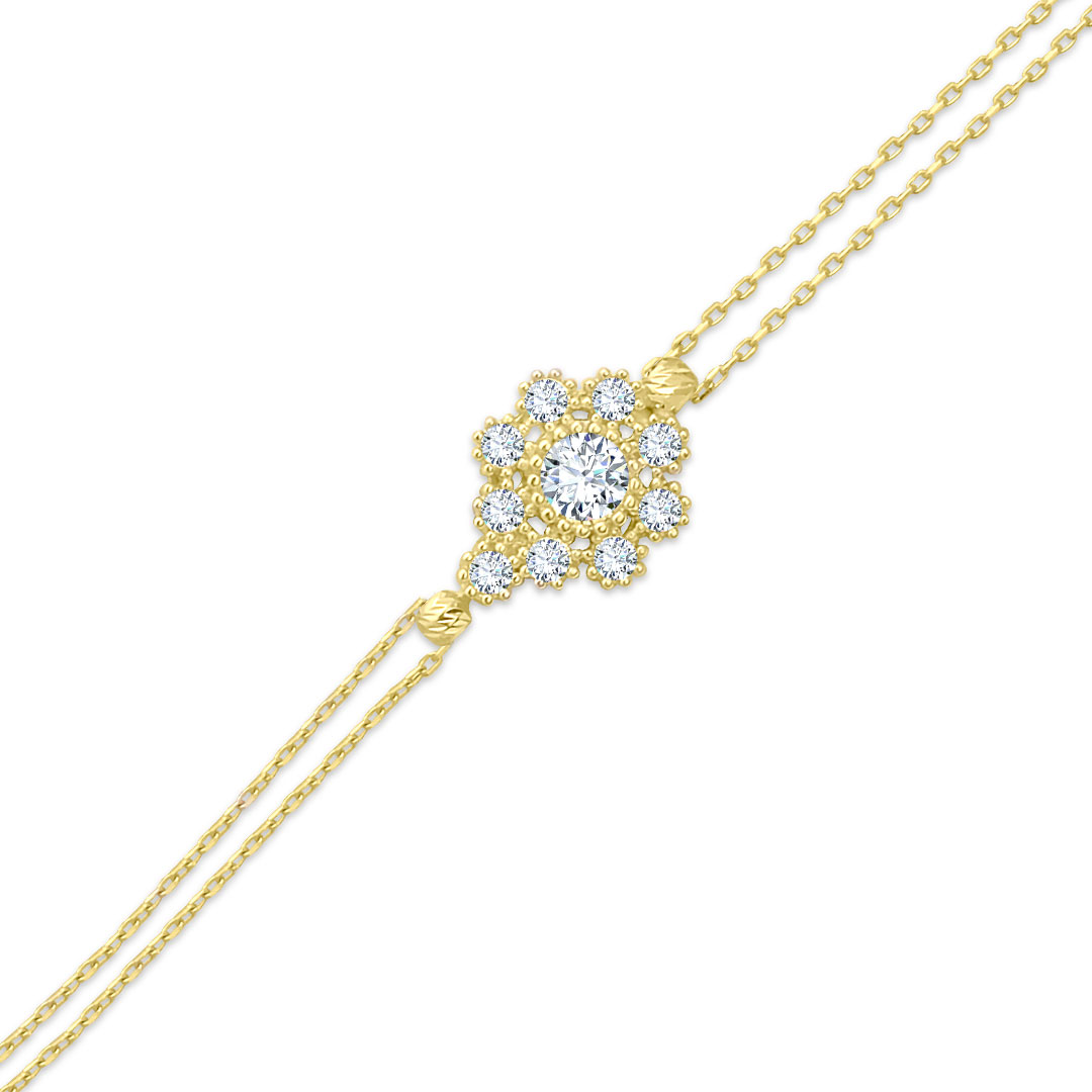 18,5 Cm boyunda spor hafif tasarımı ile günlük olarak da kullanabileceğiniz 2.00 gr ağırlığında 14 ayar altın minimal detaylı taşlı çiçek bileklik.