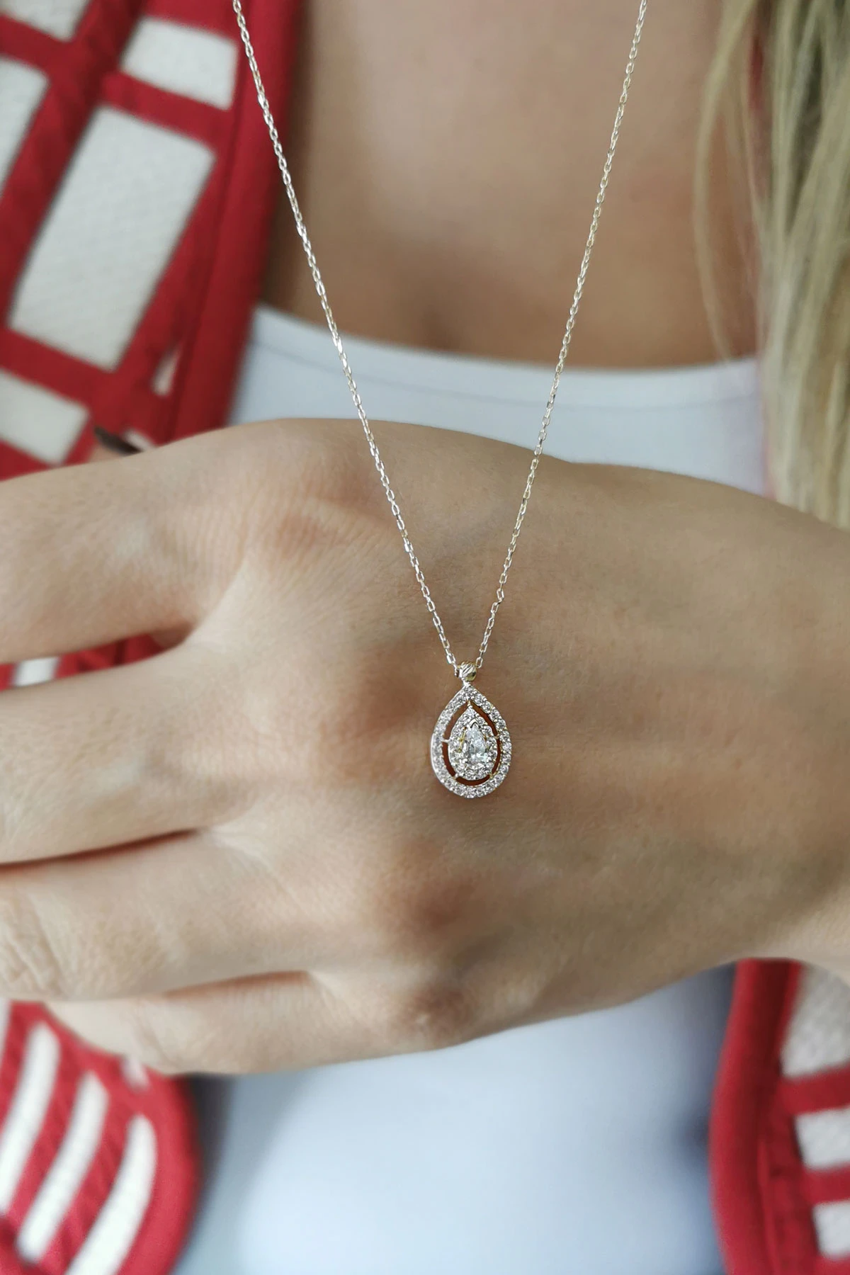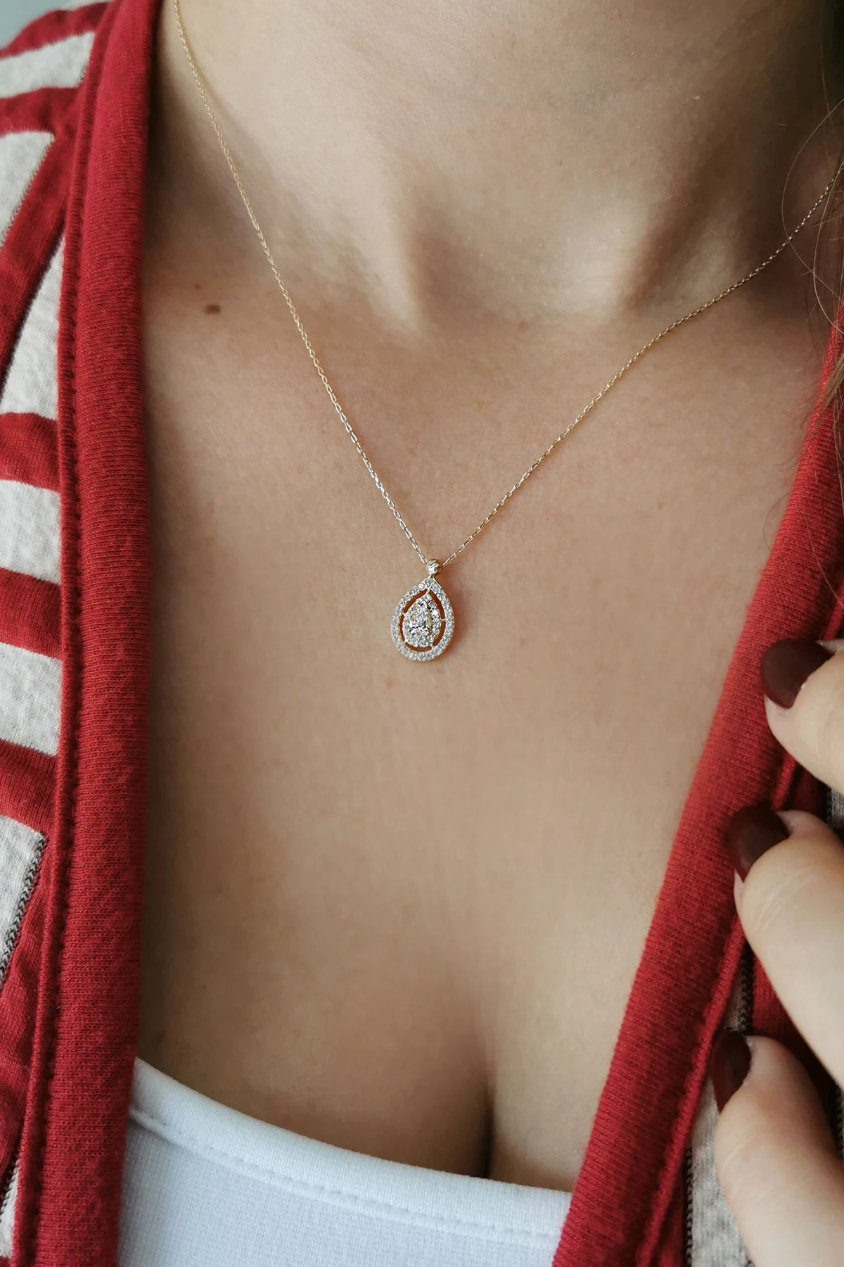 1.75 Gram Ağırlığında 1.6 Cm Boyutunda Taşlı Minimal Altın Zarif Tasarım Damla Kolye.
