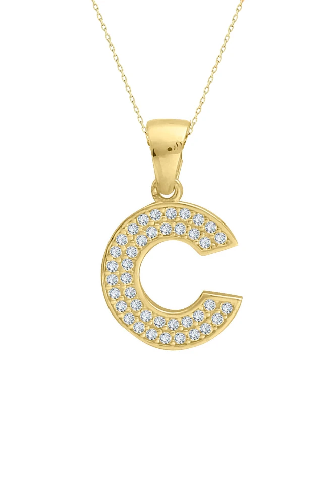 14 Ayar Altın Taşlı Spor Ve Minamal Model C Harfi Kolye.