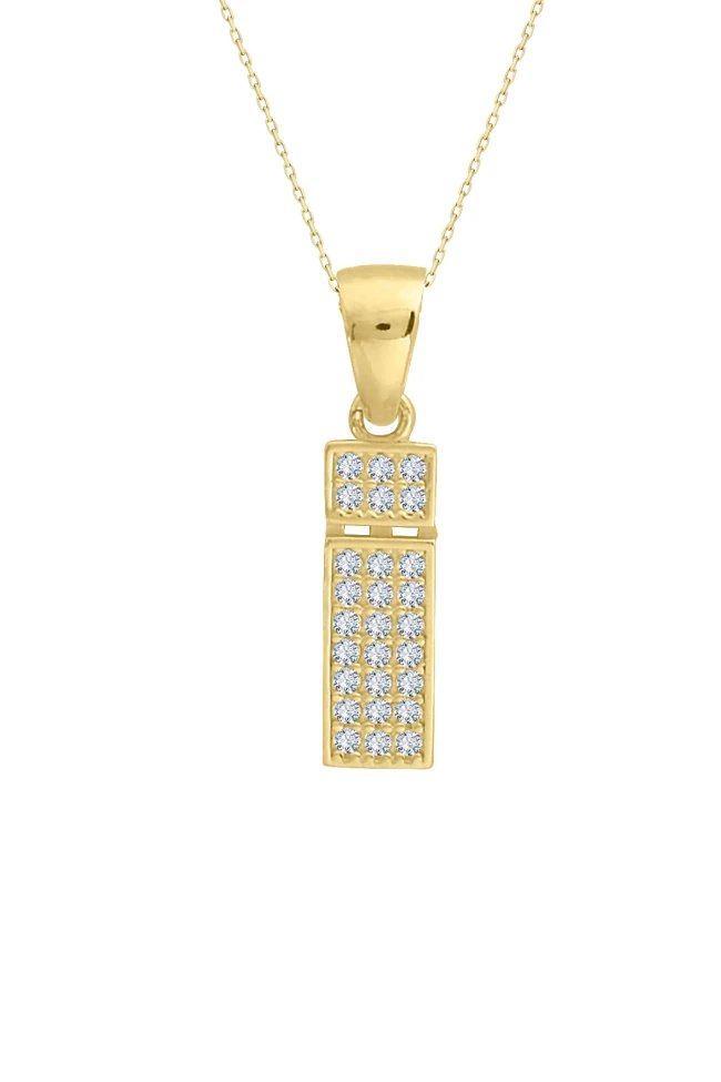 14 Ayar Altın Taşlı Spor Ve Minamal Model İ Harfi Kolye.