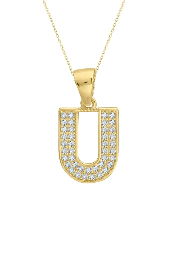 14 Ayar Altın Taşlı Spor Ve Minamal Model U Harfi Kolye.