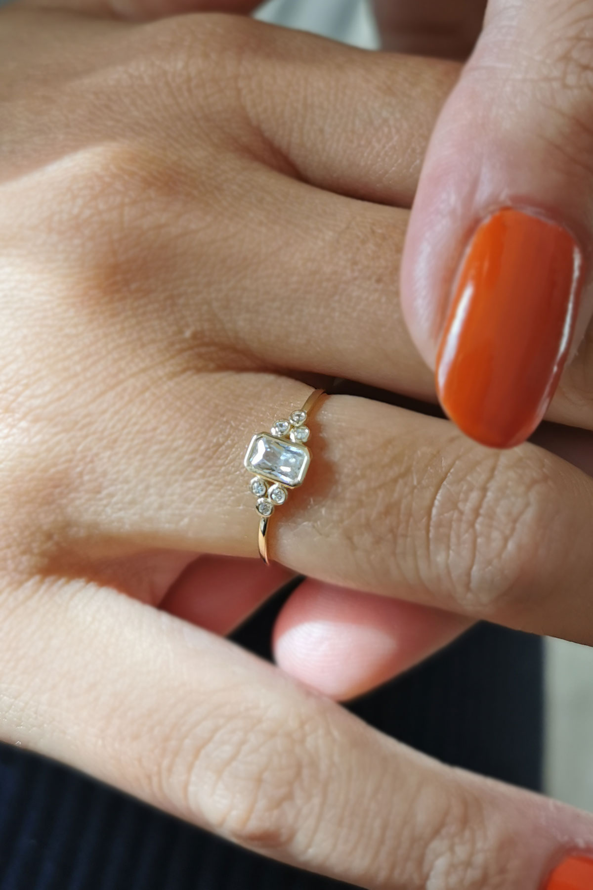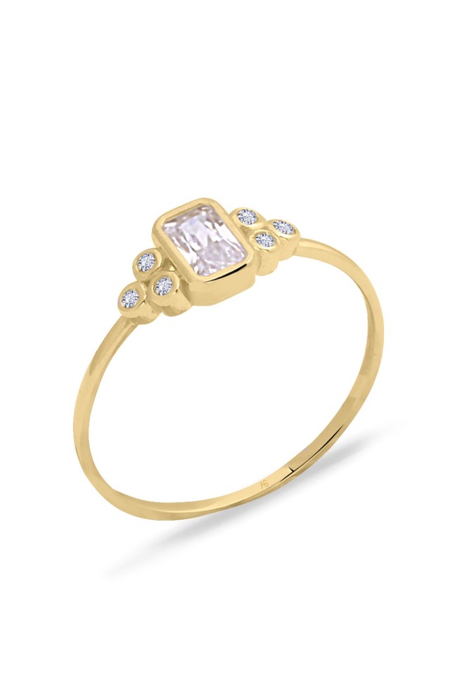 14 Ayar minimal tasarımlı zarif duruşa sahip baget taş detayı ile sevdiklerinize yada kendinize armağan olarak tercih edebileceğiniz modern model günlük kullanıma uygun 0.80 gram ağırlığında farklı model yüzüklerinizle bir arada da kullanabileceğiniz altın kombin yüzük.
