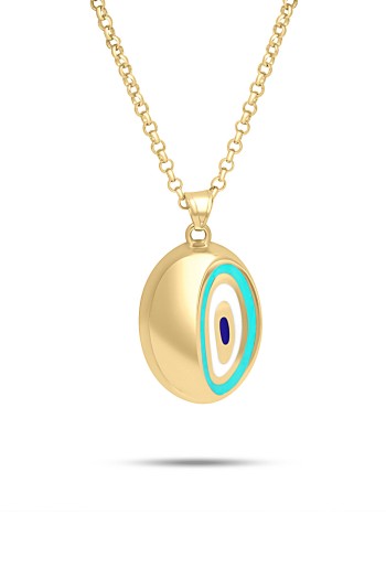 14 Ayar nazardan korunmanın en şık hali olarak tabir edebileceğimiz minimal tasarıma sahip günlük kullanıma uygun farklı kolyelerinizle bir arada kombine olarak da kullanabileceğiniz 2.60 gram ağırlığında göz altın kolye.